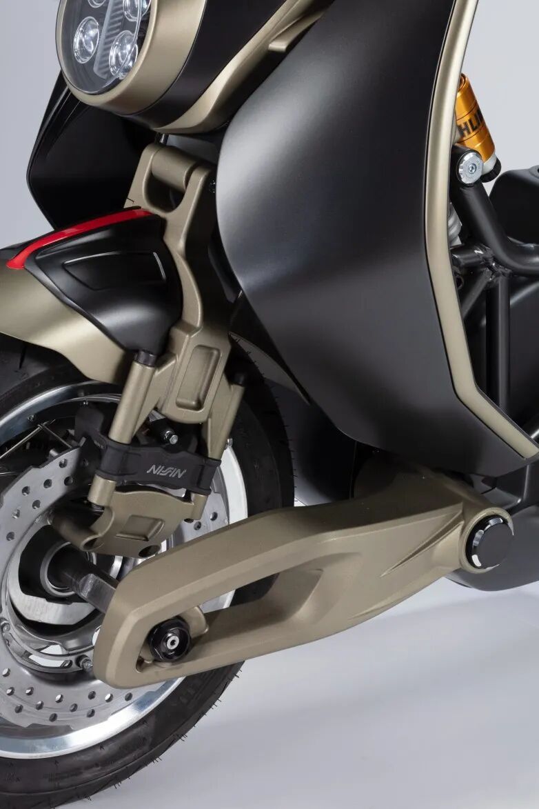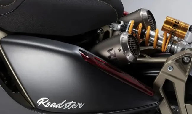 Italjet 发布新车型 Roadster 400,外形就是 Italjet 的全部,采用的是它最擅长的全裸钢管车架,配合它独有专利的 DLAS(动态连杆铰接式转向系统),前轮悬挂灵感源自 Dragster 系列的单叉臂式悬挂,并进行了优化。下臂集成了车轮轴和制动卡钳安装座。后悬挂结构也是绝无仅有,后减震与后座连在一起,设计天马行空,前后都采用了奥林斯的减震,效果已经不用去验证,视觉这块到位就是成功。配备了钢丝辐条轮毂也是精致感十足,Ak 双出排气也是十分吸睛。还搭配了一块相得益彰的圆形 TFT 彩色仪表。发动机配备了一台 394cc 排量的单缸水冷发动机,最大马力 41.5Ps/7500rpm,最大扭矩 41.2N・m/6000rpm。
