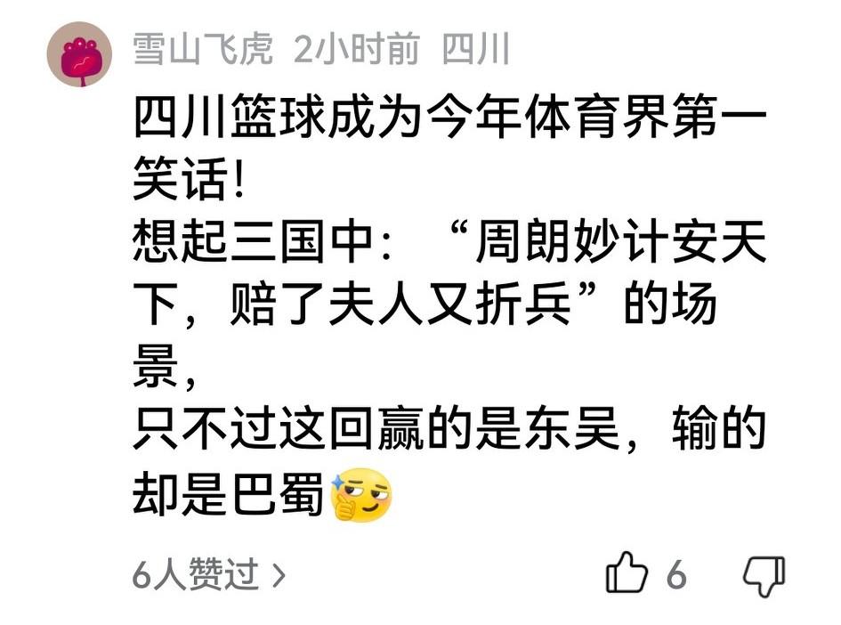 四川全运男篮输浙江,包括不少四川球迷在内的全国球迷大都当搞笑的龙门阵来摆。 四川队几乎雇佣了半个浙江队,连教练也是浙江的,外加北京队的周琦,在前五场都大胜对手,号称全运无敌。谁知半决赛遇到浙江队,疑似600万周琦也扛不住多数人“卧底”。[捂脸] 从头至尾,允许用雇佣军打全运会,这机制就有大问题;可笑的是四川篮协,居然傻傻地参与,在宫斗戏一般的全运篮球比中演了一场让人笑破肚皮的悲剧。 有人怀疑雇佣了李缘和刘禹彤的四川女篮会重蹈覆辙,但作为四川球迷,我还真的无所谓。[捂脸]