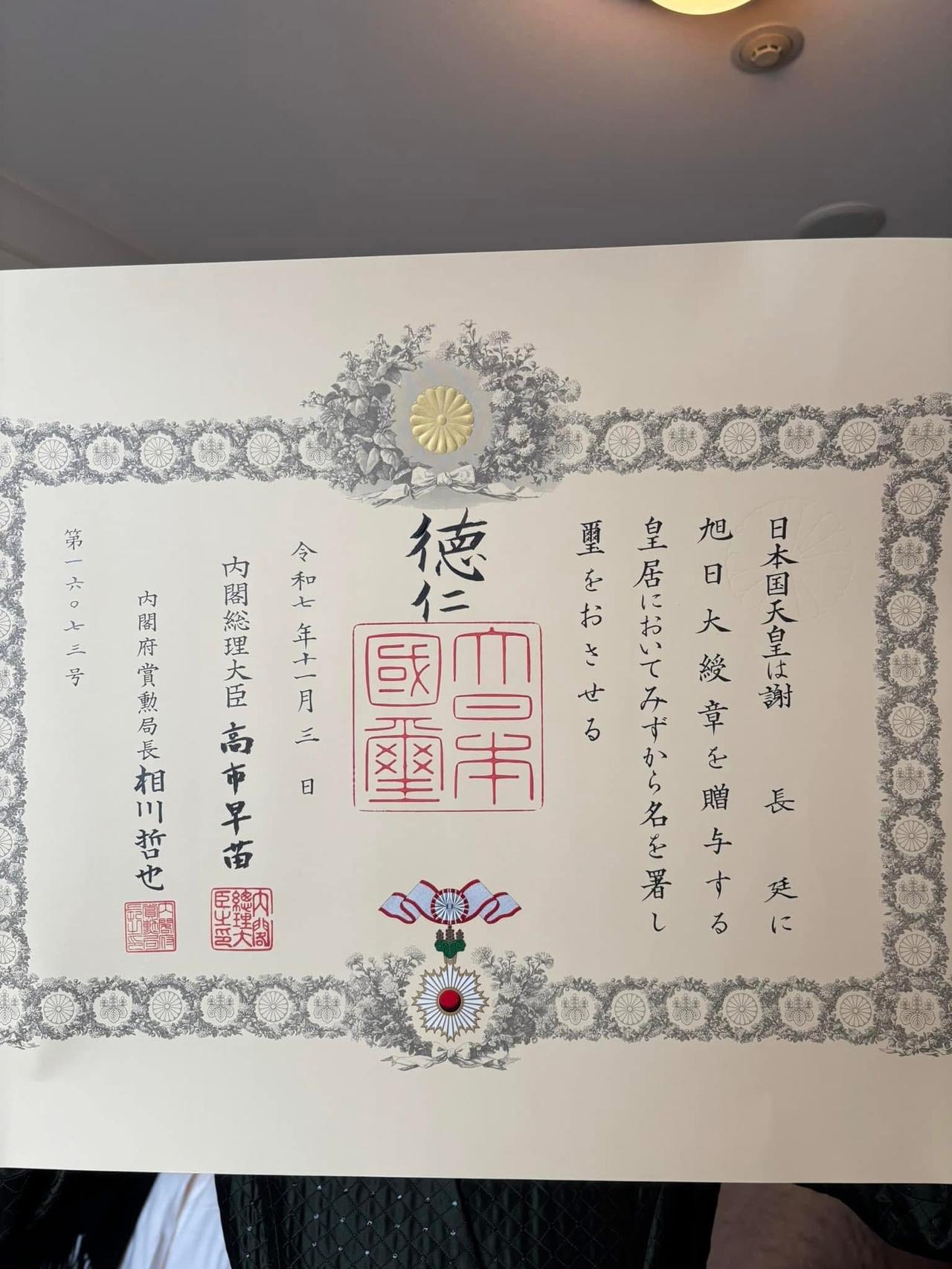 台湾驻日代表谢长廷在脸书发文表示,今天早上在东京皇居的松之间由日本天皇亲授旭日大绶的勋章,并由高市早苗首相手中接到天皇陛下亲自署名·盖印的证书,实在是我人生中珍贵的体验。 今天受勋者14人,连我在内有三位外国人,天皇陛下先后以日文、英文致词,然后缓步走到我们面前,亲切的向大家握手,并分别恭喜我们这次受章。,我介绍自己说来自台湾,并说感到非常荣誉、非常光荣,不会辜负这个授勋,今后将继续为日台友好而努力。 高市早苗首相因国会预算委员会还在质询,她致词后即匆匆离去,但专程赶来授予证书,看得出来诚意十足。 今天有许多宝贵的镜头,由于遵守宫内厅的规定,没有使用手机拍摄,无法和大家分享,真的很可惜。 “日方此次授勋活动,是对‘一个中国’原则的挑衅,严重干涉中国内政,向‘台独’势力发出错误信号。台湾地区所谓‘代表’参与并公开受勋,是对国际政治秩序的破坏,应予以谴责。”