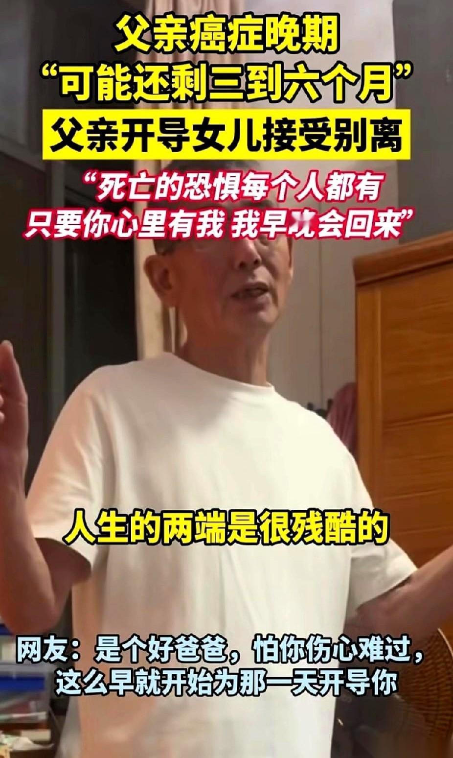 医生说,你爸顶多还有三四个月。 我们几个当时就崩了,哭得稀里哗啦的,感觉天都塌下来了。 结果我爸,那个查出癌症的当事人,反过来劝我们。 他说,哭啥,人生不就这么回事儿么,生老病死,自然规律。别把我当病人,就当我出个远门,去旅个游,玩够了,不就回来了嘛。 一瞬间,我看着他那张平静的脸,眼泪就那么挂在眼眶里,掉不下来了。 我那时候才突然明白,真正的告别,不是教你怎么哭,而是教你怎么活下去。 这让我想起我奶奶走的时候。 老太太八十多了,躺在床上,拉着我爸他们的手,气若游丝,但话说得特清楚:“我走了,你们别急躁,这路谁都得走。” “别急躁”。 你看,老一辈人有多酷。他们留给我们的最后一课,从来不是什么大道理,而是这种最朴素的姿态。 那不是不怕死,那是爱。 是爱得太深了,深到连自己的死亡,都想安排得妥妥帖帖,生怕给我们添一点麻烦,让我们多操一份心。 这才是最顶级的浪漫,也是最钝的刀子,一刀一刀,刻在心上。