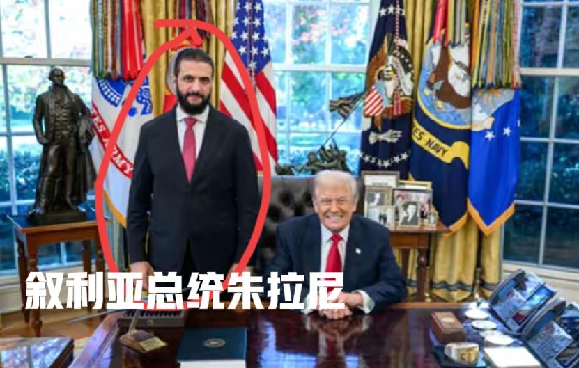 弱国无外交,实力不对等,叙利亚总统朱拉尼到访美国,11月10日,叙利亚总统朱拉尼到访白宫,朱拉尼站着,跟个下属似的,特朗普坐着,一看就是老板,这次朱拉尼还是从侧门进的,可见,在人家美国眼里多么不入流,曾经被美国悬赏1000万美元捉拿的朱拉尼,转身就变成了伙伴,这翻云覆雨的能力,也就美国能做出来,您怎么看?