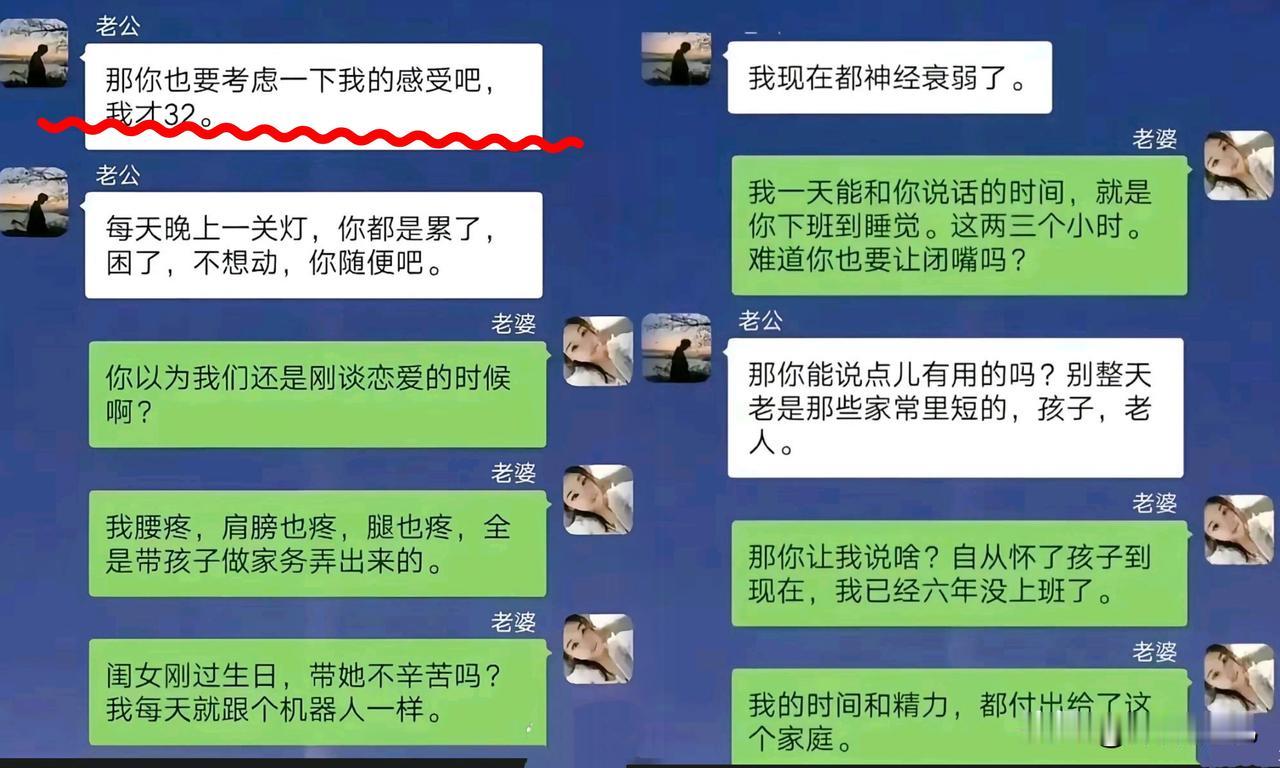 一对夫妻聊天记录,看完心疼到窒息! 她在对话框里求关心,他用沉默敷衍。 原来最伤人的婚姻,是一个人的孤军奋战,看完眼眶... 扎心夫妻真相