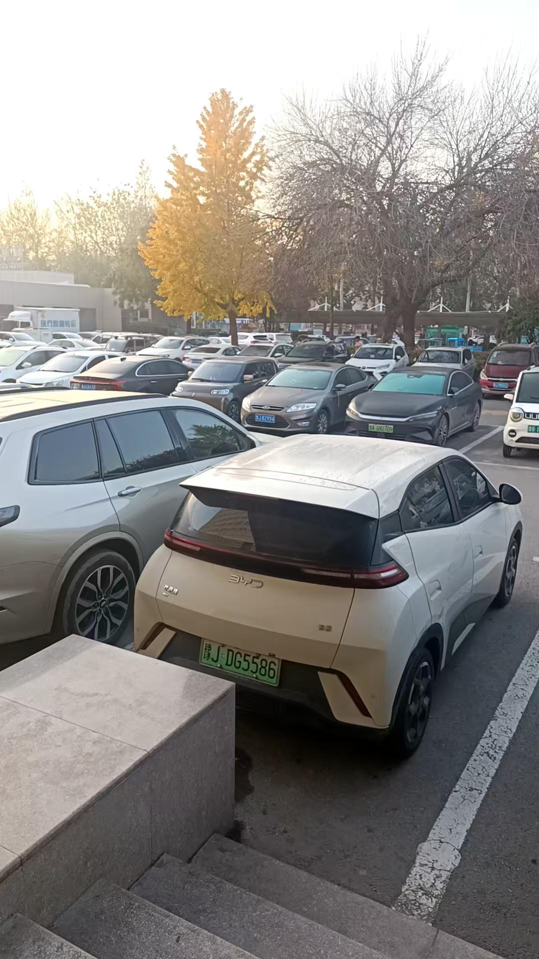 最近在一个停车场里看到了一辆很有意思的小车,它的样子像个圆润的小胶囊,车标是比亚迪,颜色是米白色,停在一堆车中间显得特别显眼。 旁边的SUV和轿车都比它大不少,对比之下,这辆小车更显得小巧灵活。 它的车身线条很流畅,车顶是黑色的,尾灯像一条细细的红线,车尾有“BYD”的字样,车牌是绿色的新能源牌照,看起来挺新的。 周围的车大多是普通的燃油车,颜色也比较单一,这辆小车的出现给停车场增添了一抹亮色。 停车场里的车很多,车位也挺紧张的,不过这辆小车似乎能在狭小的空间里轻松停放。 看着它,我在想,这种小型电动车可能很适合城市里的日常通勤,既方便停车,又环保。 总的来说,这辆小车虽然不大,但设计很有特色,让人一眼就能记住。它就像停车场里的一个小亮点,让人忍不住多看几眼。