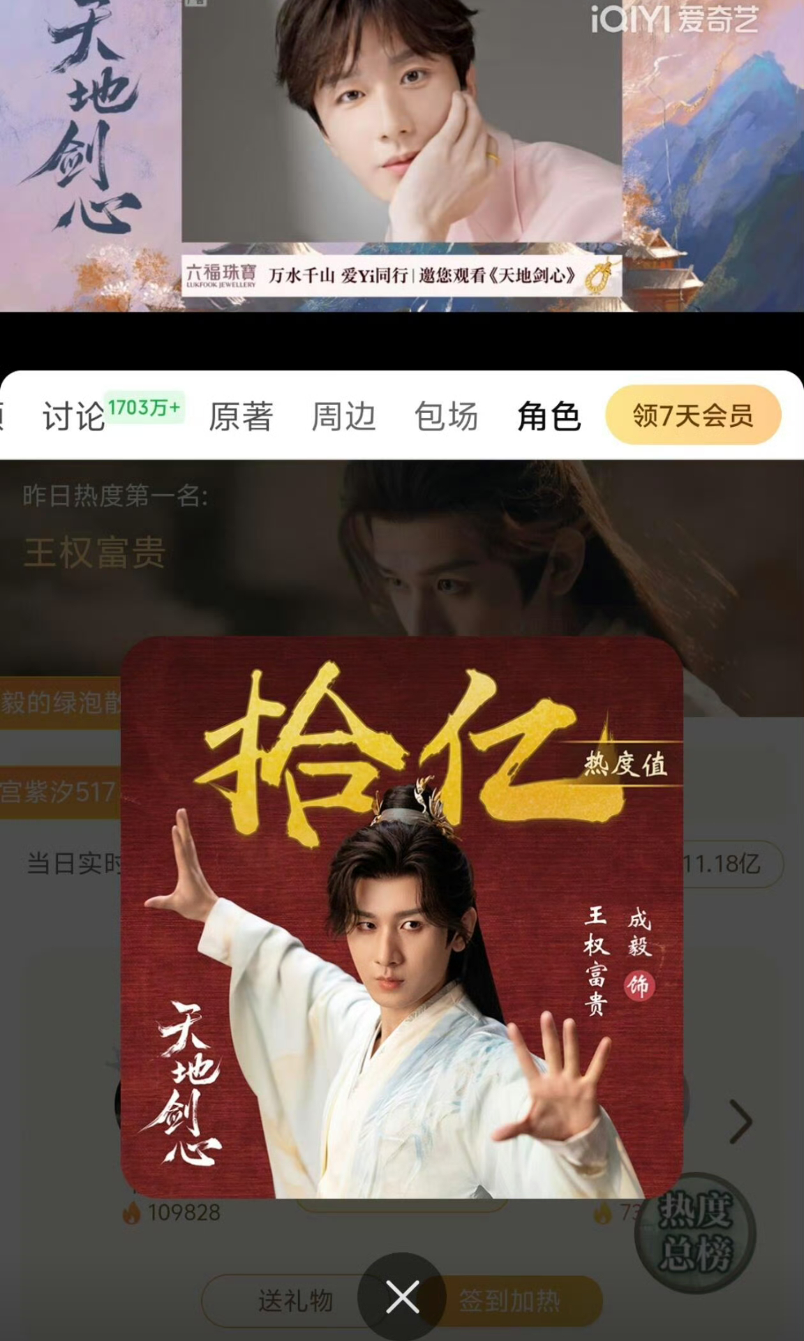 成毅主演天地剑心有效播放量顺利破4亿 !