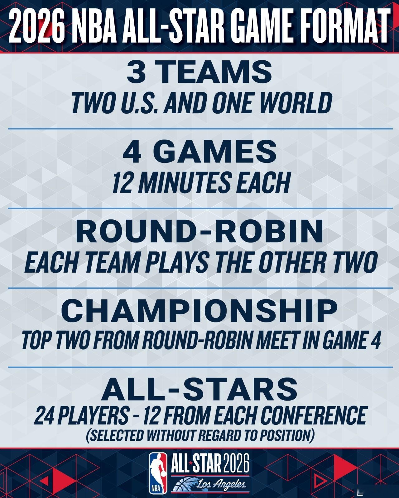 NBA今日官宣:2026年全明星将开启美国队VS世界队的全新赛制!
