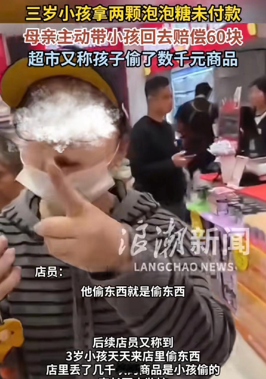 昆山幼童拿泡泡糖,零食店与父母都有错!一是零食店,两块泡泡糖,零食店让赔60元,太贵了!6块钱还差不多,这么小孩子不能算偷,按上一位顾客购其他物品的60元金额赔偿?真看不懂,这是什么理由、依据? 二是孩子爸爸,妈妈都上门赔偿道歉了,这事就完了,爸爸认为赔多了,上门理论,门店前阶段失窃几千元,本来就怀疑,结果双方话赶话,冲突升级! 可见,就是一场误会!事情虽小,不过也提醒每一个人,在生活为人处世,退一步海阔天空!别给别人、别给自己添麻烦!