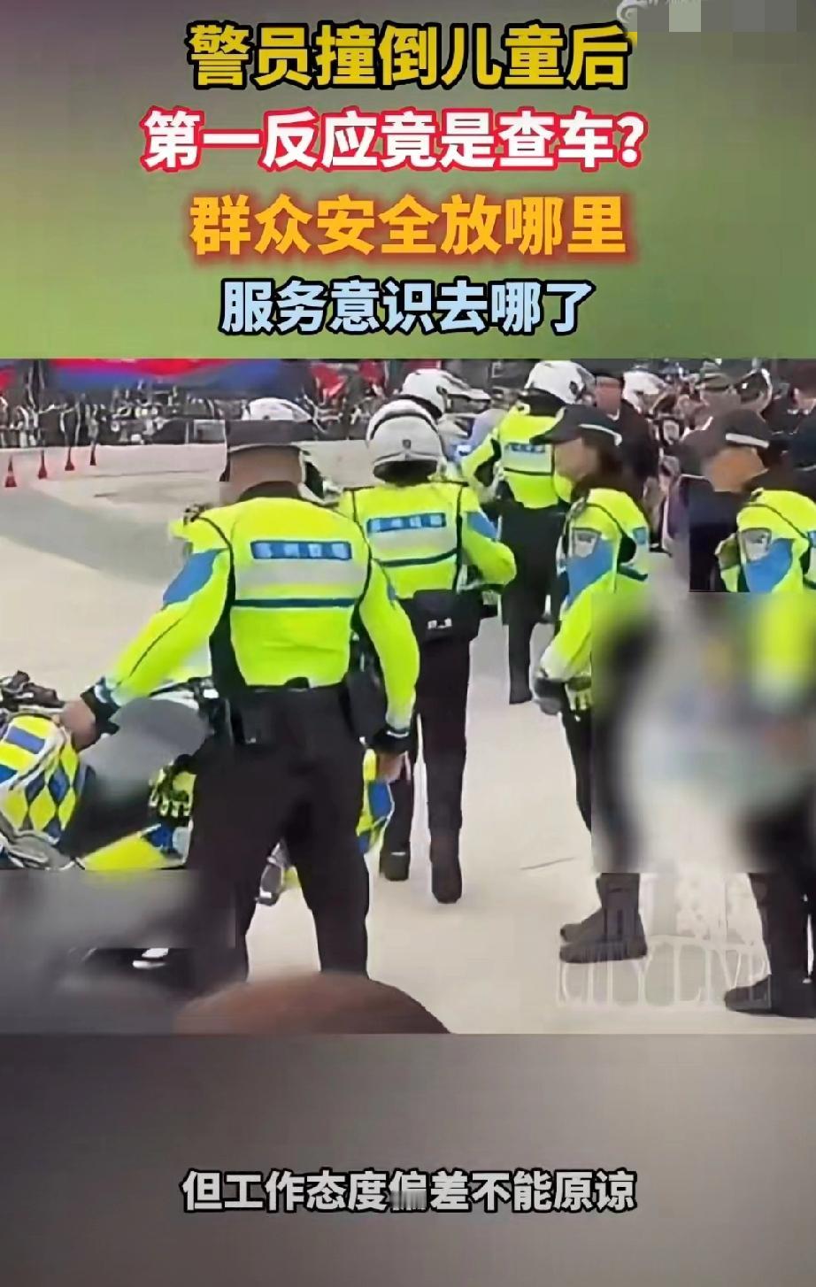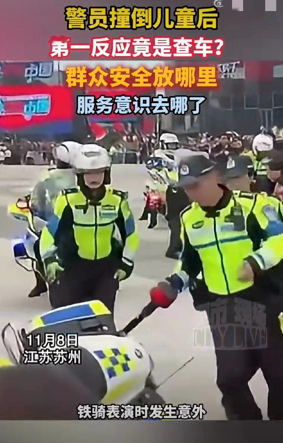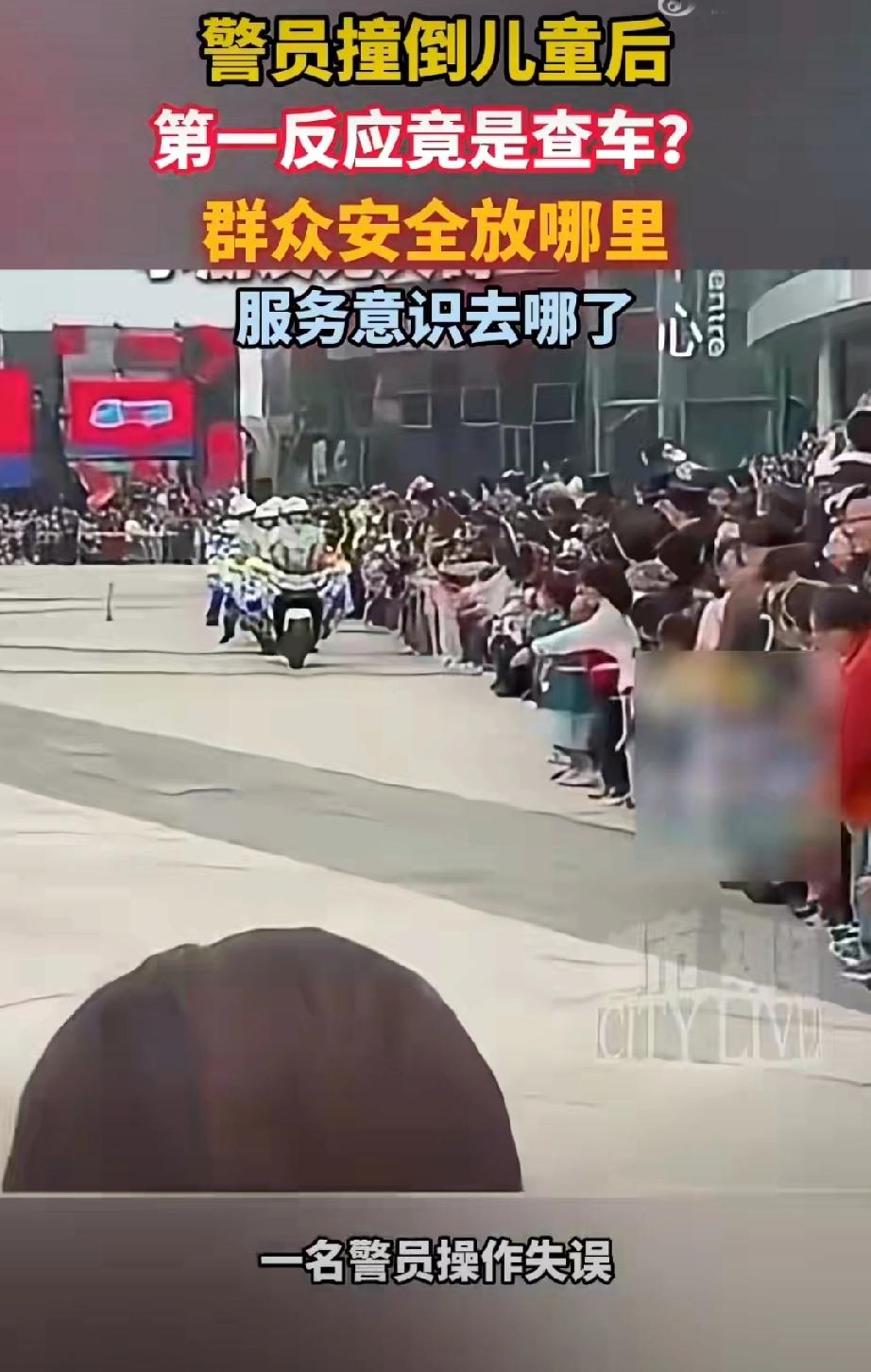 女骑警表演失误撞人后先看车。看了视频,女骑警问题挺大的,在表演失误撞人后,第一反应是先看车,形象分和思想分就已经是不合格了,至少没有天生爱人的能力。然后就是她自己一人居然无法马上扶起摩托车,要找人帮忙扶车,从头到尾像个看戏人一样站在旁边,这样花瓶是怎么通过选拔的?难道女骑警平时出勤的时候也是这个状态吗?这样的体力和力气,平时要怎么执行出勤任务?我很难想象。[摊手][摊手][摊手] 驾车撞人 车撞人 铁骑执法