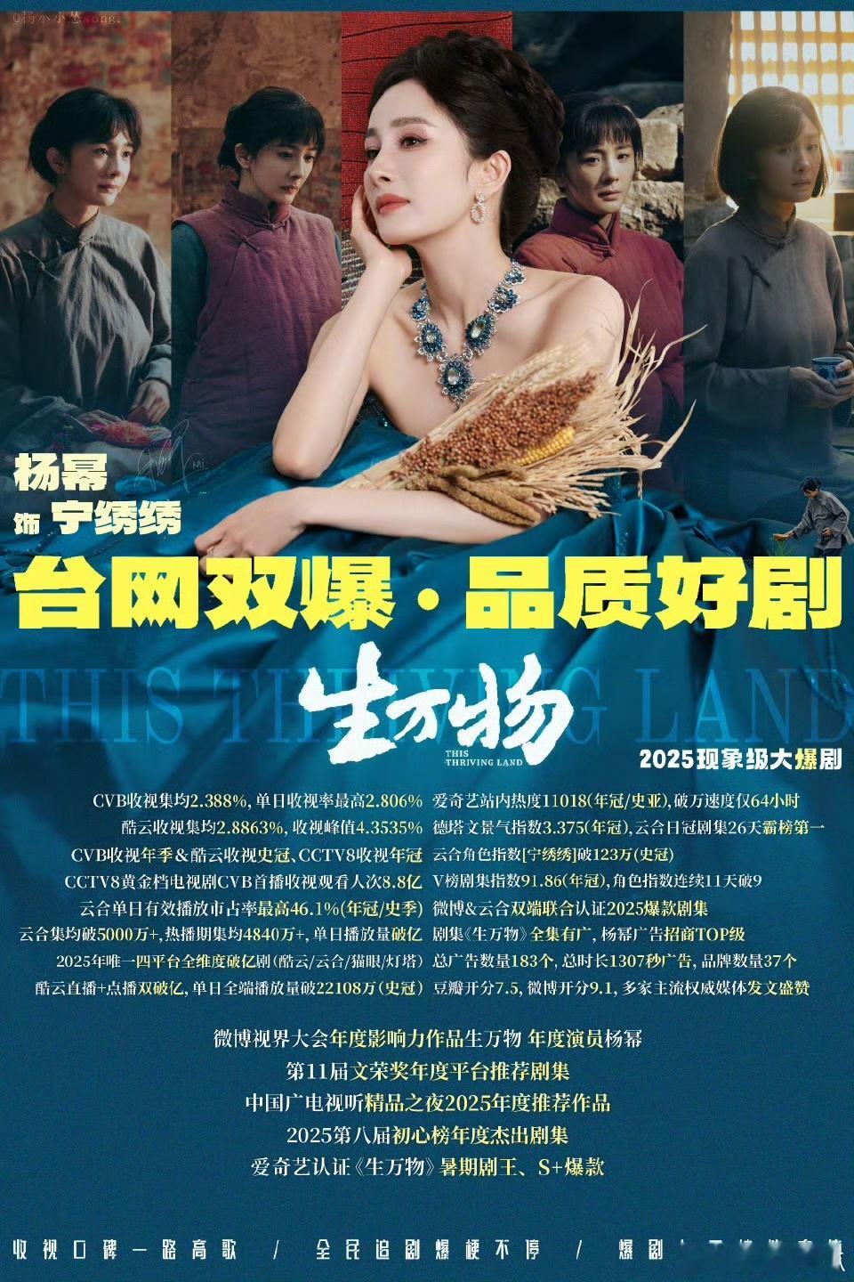 不止是爆款,更是口碑之作!《生万物》获央媒点赞,被誉为对“精神原乡”的深情呼唤。土地魂亦是民族魂, 饰演的宁绣绣,以她的坚韧、觉醒与成长,打动了无数观众,真正让角色开出了花!🌸