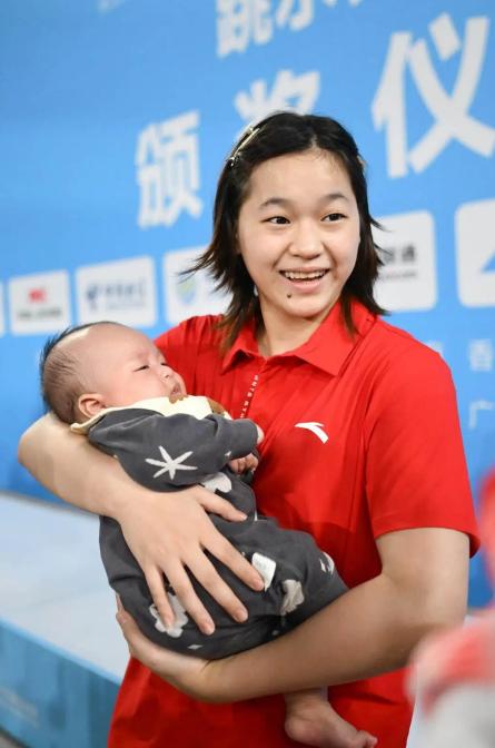 抱着孩子领奖的全红婵,可能是全中国,甚至全世界最松弛的运动员了吧! 十五运跳水赛场上,刚结束女团决赛的全红婵换了队服,怀里多了个软乎乎的小婴孩,那是师兄谢思埸的宝宝,师兄正忙着领奖合影,把孩子安心交到她手上。 她的胳膊还带着刚从跳台下来的紧绷,托着孩子时却慢慢放柔,指尖小心翼翼蹭过宝宝的衣角,低头看孩子的眼神里全是好奇,一点没有赛场上的锐利。孩子在怀里扭了扭,她赶紧调整姿势,嘴角绽开的笑憨乎乎的,毫无防备的样子完全不像拿过奥运冠军的顶尖运动员。 这份松弛从来不是装出来的,是她对跳水最本真的理解撑起来的,七八岁被教练选中时,她哪懂什么为国争光,就觉得跳水比上课好玩,纵身跳进泳池的瞬间比坐教室有意思多了。 后来站到十米跳台,面对全世界的镜头,她也没把“冠军”当包袱,东京奥运会一鸣惊人拿了金牌,记者围着问秘诀,她挠挠头说就想着把每个动作跳好,别的没敢瞎琢磨。 被喊“天才少女”喊了好几年,她次次都认真纠正,说自己不是天才,全是练出来的,陈若琳教练陪着她改动作的日子,每天练七八个小时,累得连吃饭都没力气。 她的松弛里藏着对输赢的通透,巴黎奥运会卫冕那天,她抱着陈若琳哭了,可转过头接受采访,就坦诚第三跳失误是被观众的呐喊打乱了节奏,还给自己只打50分。 全运会双人项目没拿到好名次,记者安慰她跳得不好也没关系,她笑着说现在也很开心,还对着镜头给自己比了个“我真棒”的口型。 广东队教练何威仪偷偷说,她胫骨和踝关节全是伤,身上贴满肌贴,每天敷着冰还得反复起跳,可这些苦她很少提,只说“完整坚持下来就很厉害”。连被问要是以后不练了没人喜欢怎么办,她都看得开,说能接受,开心最重要。 这种自在劲儿是在起伏里熬出来的,巴黎奥运周期那段日子最磨人,她个子窜得快,体重涨了近十斤,原本轻巧的动作变得沉重。跳水这项目对身体太苛刻,广东省队教练何威仪打比方说,运动员身体像时钟,体形越小翻腾越灵活,她那阵子就像带着负重跳。 最难的是改207C动作,背对着泳池翻腾三周半,看不见水面的恐惧让她频频失误。陈若琳陪着她一遍遍练,从早上到傍晚,直到她能稳稳入水。多哈世锦赛终于拿下单人金牌那天,她没喊没跳,只是安安静静和教练击了个掌,好像那枚金牌只是日常训练的一个注脚。 她的松弛还藏在和队友的相处里,跟陈芋汐既是对手又是闺蜜,俩人在赛场上你追我赶,私下里却互相兜底。全红婵说过,就算自己跳砸了也不怕,有陈芋汐撑着,俩人拿了双人金牌,单人项目不管谁赢都是为国争光。 每次比完赛,她第一条消息不是发给家人,是发给“熊姐”陈艺文,那个跳水队里照顾她的师姐。师兄谢思埸敢把孩子直接塞给她,也是认准了这姑娘身上的踏实劲儿,赛场边她抱着宝宝哄的样子,跟平时练完跳台追着队友打闹的模样没两样,全是真性情。 这几年看着她从青涩到从容,更懂这份松弛多难得,2021年第一次接受采访,她面对镜头紧张得说不出话,问啥都只答几个字。现在再被记者围着,她会主动说“别急,一个个来”,聊到喜欢的音乐,眼睛亮起来说爱听激烈的摇滚,能让自己兴奋。 有人问她成年了要不要改风格,她反问“为什么要改”,做自己就挺好,巴黎奥运会决赛前半程领先,第三跳被追近比分,她就在台下悄悄比划动作,没一点慌神,第四跳稳稳跳出全场最高分,那种稳不是硬撑,是心里有底。 其实运动员的松弛从不是没压力,是能把压力和自己分清楚,全红婵心里跟明镜似的,知道10米跳台更新换代快,说不定哪天就被更年轻的队员超越,可她觉得这是好事,“小朋友更厉害才好”。 她把跳台当战场,却没把自己困在冠军的光环里,怀里抱着孩子时,她是被师兄信任的小师妹;站在跳台上时,她是心无旁骛的运动员;接受采访时,她是敢说“跳得差但开心”的普通人。 这种状态太少见了。多少人被成绩绑架,赢了怕输,输了崩溃,可全红婵偏偏活得通透,她的松弛是对跳水的热爱没掺杂质,是对自己的接纳不打折扣,是在名利场里还保着的那点孩子气。 就像她抱着孩子站在领奖台边,身后是国旗,怀里是生活,两种重量都接得住,还能笑得那么自在,这大概就是最动人的模样,不是永远赢,而是永远能在赛场上做自己,在生活里守真心。