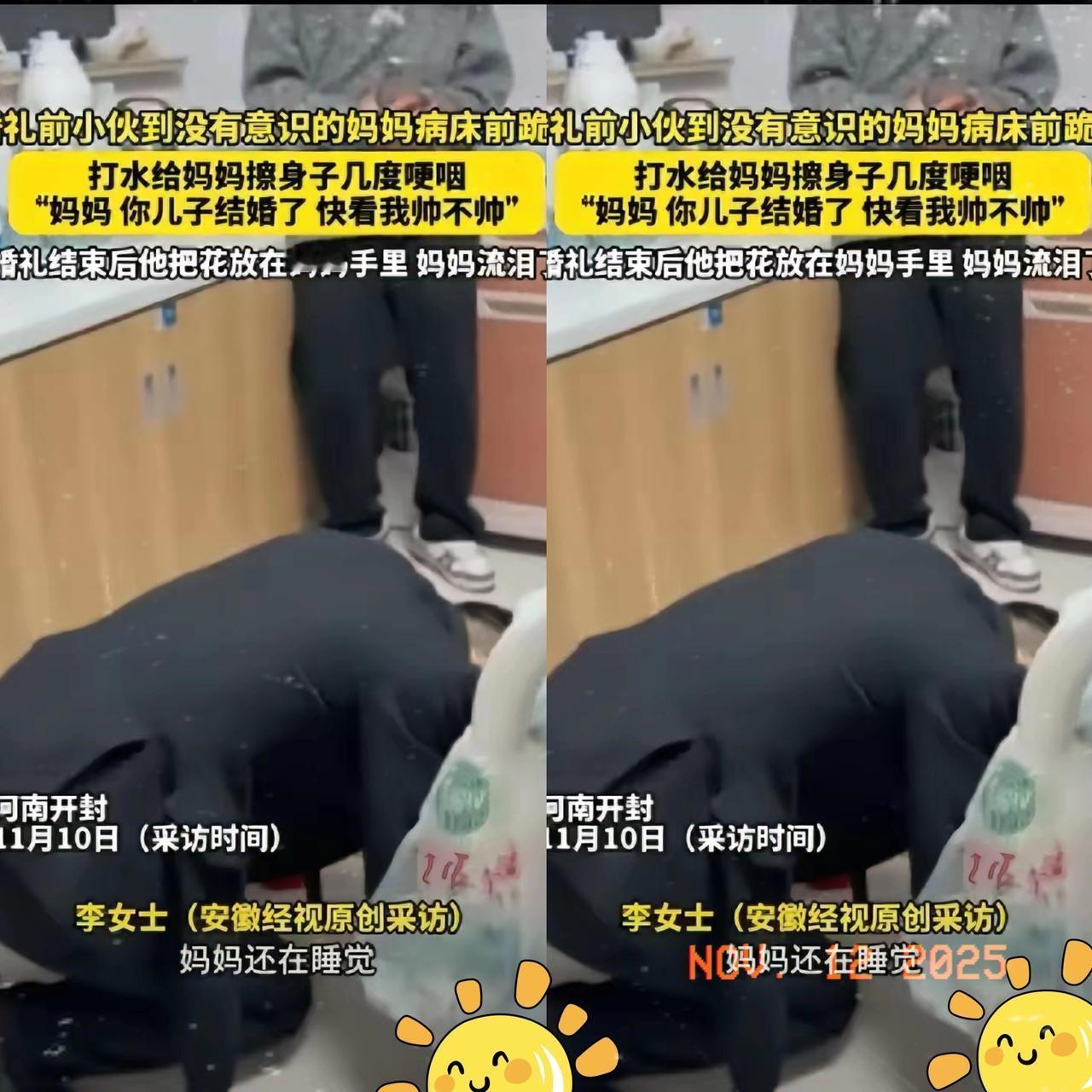泪目! 河南开封这场婚礼太戳心, 新婚夜新郎竟带新娘直奔医院! 不是去度蜜月,而是跪在昏迷母亲病床前恭恭敬敬三拜,要让妈“见证”自己成家。新娘没有抱怨,反而握着婆婆冰凉的手轻声安抚,一句“你在哪、妈在哪”暖哭众人。 比起满是功利的排场,这种共担风雨的真情才是婚姻的真谛!这样的特殊婚礼,是不是比豪华仪式更有意义?评论区说说~