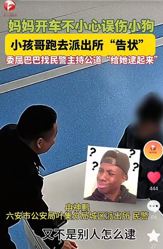 笑不活了!近日安徽六安,一位小男孩跑进派出所,见到警察的第一句话就是要把自己妈妈抓抓起来,警察同志瞬间打起精神询问男孩原因,没想到男孩说出原因后,所有人都哭笑不得了。 原来,男孩的妈妈什么犯法的行为都没干,只是在开车的时候把家里养的小狗给轧到了,男孩瞬间委屈了,因为是自己养的狗所以非常心疼,想起上课学的开车撞别人是犯法的,所以就来派出所举报妈妈,想让警察叔叔把妈妈抓起来。 派出所里,男孩一边哭一边说着妈妈的“恶行”,警察同志听完后都哭笑不得了,赶忙安慰男孩说:这是妈妈不小心轧的啊,我们待会跟妈妈讲一下,开车要注意,你也别哭了,小男孩要坚强一点。 安慰完男孩,警察同志拍了拍男孩的头,擦去了男孩脸上的泪水,跟男孩父母沟通完之后,把男孩安全送回了家。 有网友说:大义灭亲,这小伙子有前途。 也有网友说:是安全到家了,可是到家之后安不安全就说不好了。 还有网友说:这妈妈混的太惨了,家庭地位还不如一条狗。 看完经过真的笑不活了,谁能想到儿子举报亲妈仅仅是因为一条狗,这男孩将来必成大器。 我觉得倒不是妈妈在男孩心里没狗重要,而是男孩知道什么是对的什么是错的,知道妈妈压到狗不对,就想让妈妈承担后果,只是这方式方法真的让人不知道说什么好了。 爱狗是好事,只是具体应该怎么爱,男孩还没有搞懂,这就需要家长的引导和教育了,估计等孩子长大了,再想起这件事,也会觉得自己当时办的不妥当吧。 你怎么看?评论区说说吧。 素材来源:AHTV第一时间