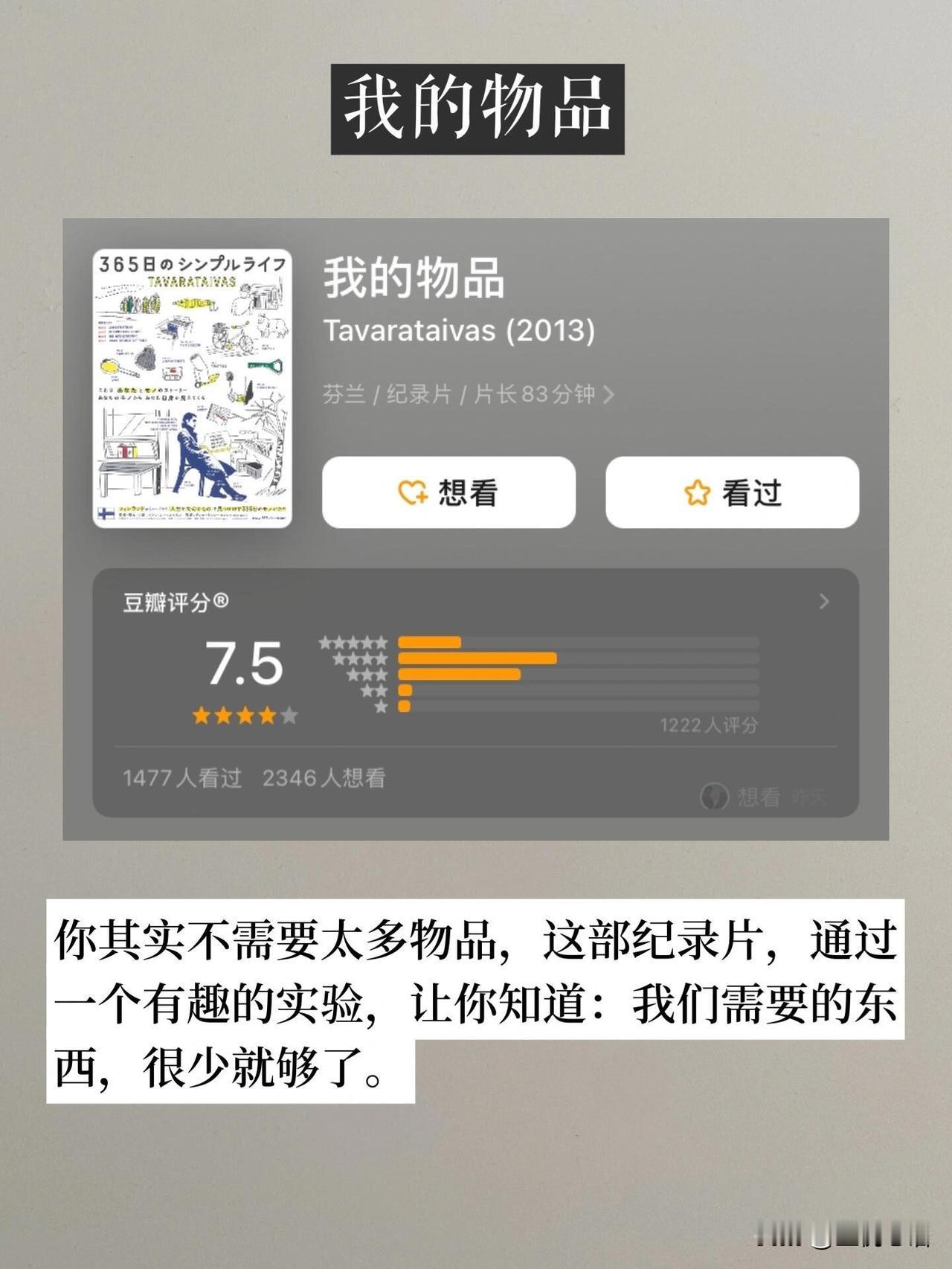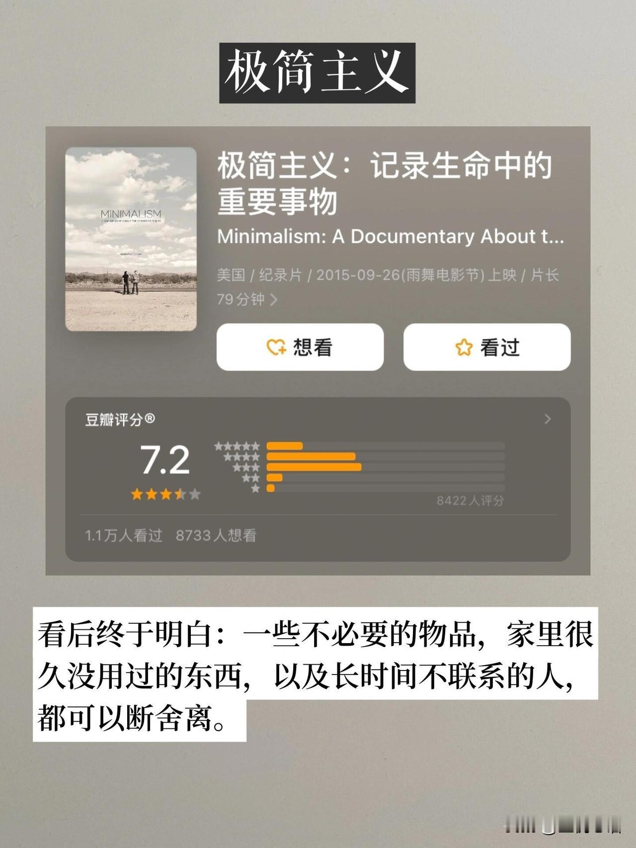 断舍离后,我的物欲真的清零了! 谁懂啊!以前购物车永远清不完! 看到打折就忍不住冲, 直播间一蹲就是几小时, 买回家的衣服穿一次就压箱, 护肤品堆到过期, 钱花了不少, 家里堆得乱糟糟,心里还空落落。 直到狠狠断舍离一次! 扔掉不用的东西, 才发现需要的其实很少。 现在买东西先问自己:真的要用吗? 非必要不入手,日子反而更松快。 没有了跟风消费的焦虑, 不用为闲置心疼钱,心里踏实多了! 原来精简生活,才是真的治愈~ 分享下相关断舍离纪录片。 人生断舍离