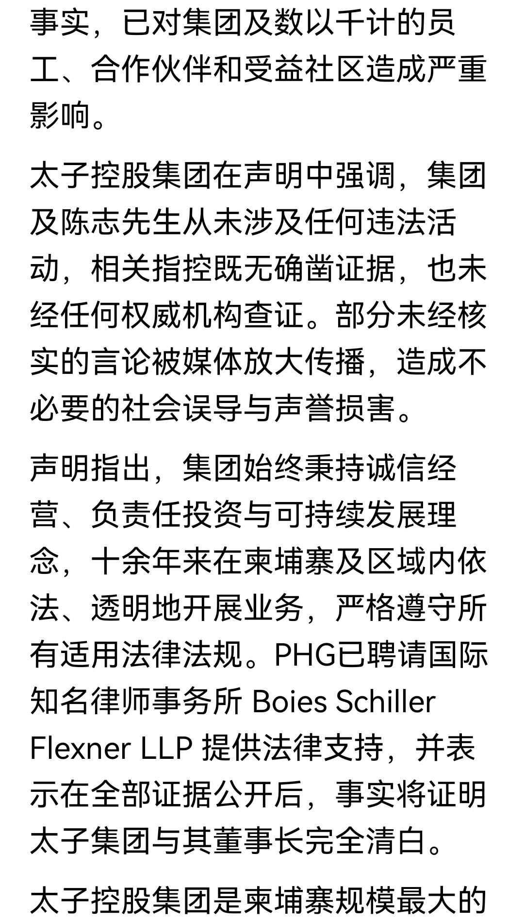 太子集团严正声明:强烈否认涉诈指控