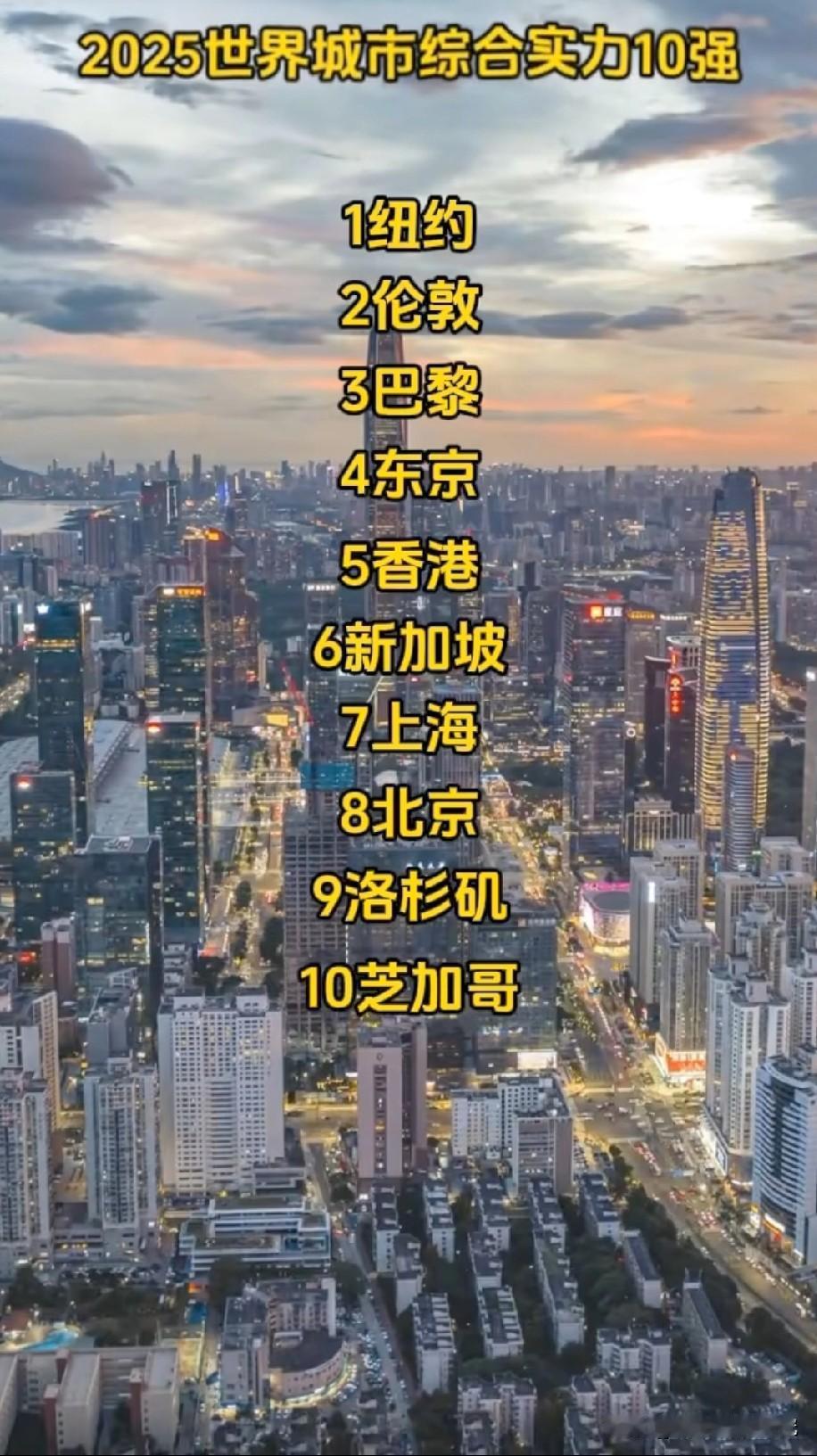 2025年世界综合实力前十强城市排名情况,世界综合实力十强城市中国的北京,上海,以及香港都有上榜。