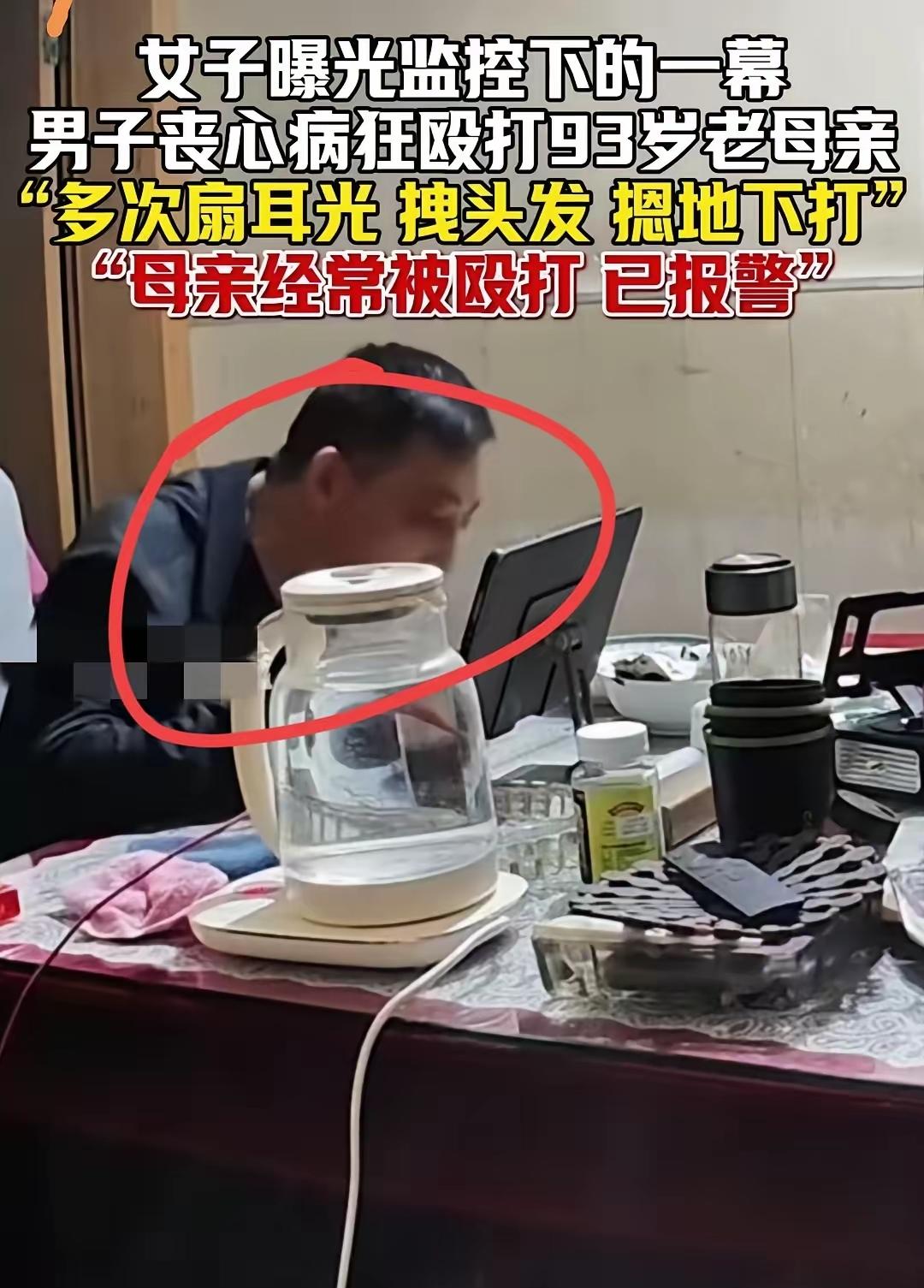 江苏常州发生了件让人气愤的事。一位93岁的老太太被亲生儿子打得满头是血,视频是她女儿发出来的。 从视频里看,老人坐在沙发上歇息,儿子突然冲过来扇她耳光,接着把老人按在地上拖来拖去。 老人疼得直叫唤,爬起来想跑,可腿脚不利索摔在地上,儿子还在旁边继续骂。 当地派出所很快介入调查,把打人儿子抓走了。 听说老人平时一个人住,女儿在外面打工,儿子平时就经常对她不好,这次是为了一点小事又动了手。 现在网上很多人都在骂这个儿子禽兽不如,担心这种人关几天就放出来,老太太以后怎么办。 按法律来说,打老人这事情节恶劣的话能判两年以下,如果不算严重最多拘留五天。 很多网友觉得这点惩罚太轻了,应该关久点让这人长点记性。但也有说法说打人男子大概六七十岁,能不能判刑还不一定。 老人现在被社区人员照顾,说要送她去养老院。 可是现在养老院床位紧张,尤其是这种能提供医疗看护的机构,很多老人排队都进不去 老太太身体本来就差,要是住不上正规养老院,只能继续跟着儿子受罪。 打人视频里还能看到奇怪的一幕,老太太被按在地上时,儿子居然转身去厨房拿了零食边吃边骂。 周围邻居说这人平时不爱上班,整天在家跟老母亲吵架,有时候半夜都听见响动。 这件事让大家开始讨论养老问题。现在很多老人养儿防老,结果儿女不孝,反倒是女儿还要从外地赶回来处理 现在国家有政策,对不赡养老人的子女可以告上法院,但老太太心疼儿子不愿起诉。 网上有人说该强制让这种不孝子付赡养费,或者剥夺继承权。 还有人晒出自己父母的情况,说现在有些老人就算儿子不好,也舍不得送养老院,总觉得家丑不可外扬。 打人视频曝光后,很多社区开始排查独居老人的生活情况。工作人员说这次会重点检查儿子有没有虐待老人的其他证据,如果找到更多线索,可能会加重处罚。 但老太太一直不愿意指证儿子,说“毕竟是自己的骨肉”。 这事闹得沸沸扬扬,有网友提议设立保护老人热线,让邻居可以直接举报虐待行为。 但现实是很多老人怕连累子女,选择沉默。打人男子被抓后,老太太反而托人求情,说“不要把事情闹大”。 现在最麻烦的是找养老院。工作人员说公立养老院至少要等半年,私立的每月要好几千,老太太的退休金不够支付。 女儿说只能轮流照顾,但工作太忙走不开。 打人的视频还在网上流传,很多人评论说老来遭罪太惨,年轻人得提前考虑养老方式。 但现在的年轻人都觉得这事离自己遥远,还是每天忙于工作赚钱。 社区干部说这类案件每年都有,但老人出于感情原谅子女的情况不少。 他们正在研究给独居老人安装报警装置,但经费和推广都成问题。 打人男子现在还在拘留所,老太太每天念叨让他早些出来。 这件事就这样悬着,没人知道最终会怎么解决,但可以肯定的是,养老难题还在继续。