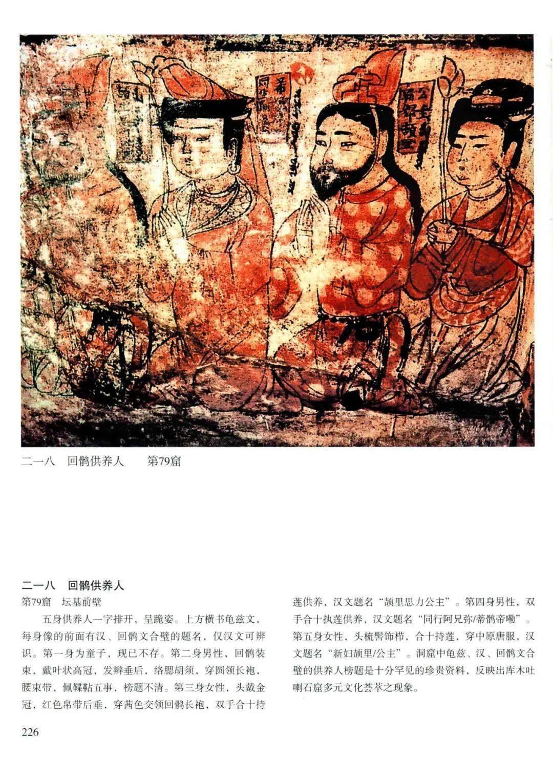 回鹘供养人 玄奘在《大唐西域记》中曾记载,公元五六世纪的龟兹“上自君王,下至士庶,捐废俗务,奉持斋戒,受经听法,渴日忘疲”。他们在石窟壁画供养人图像中占很大比重。 第一幅画,龟兹王托提卡及王后 第二幅画,幅壁面上绘有男女各二人、童子一人,共五人。王族。 童子像已脱落。画面虽存在破损,人物身旁书写了其姓名(写在人物一侧)。 (还原西域历史很重要)