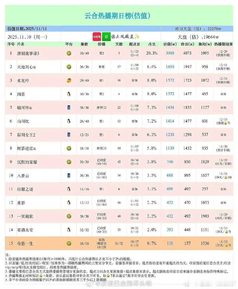 唐朝诡事录3热度破万了!成为《漂白》《临江仙》《朝雪录》《生万物》的第五部🥝破