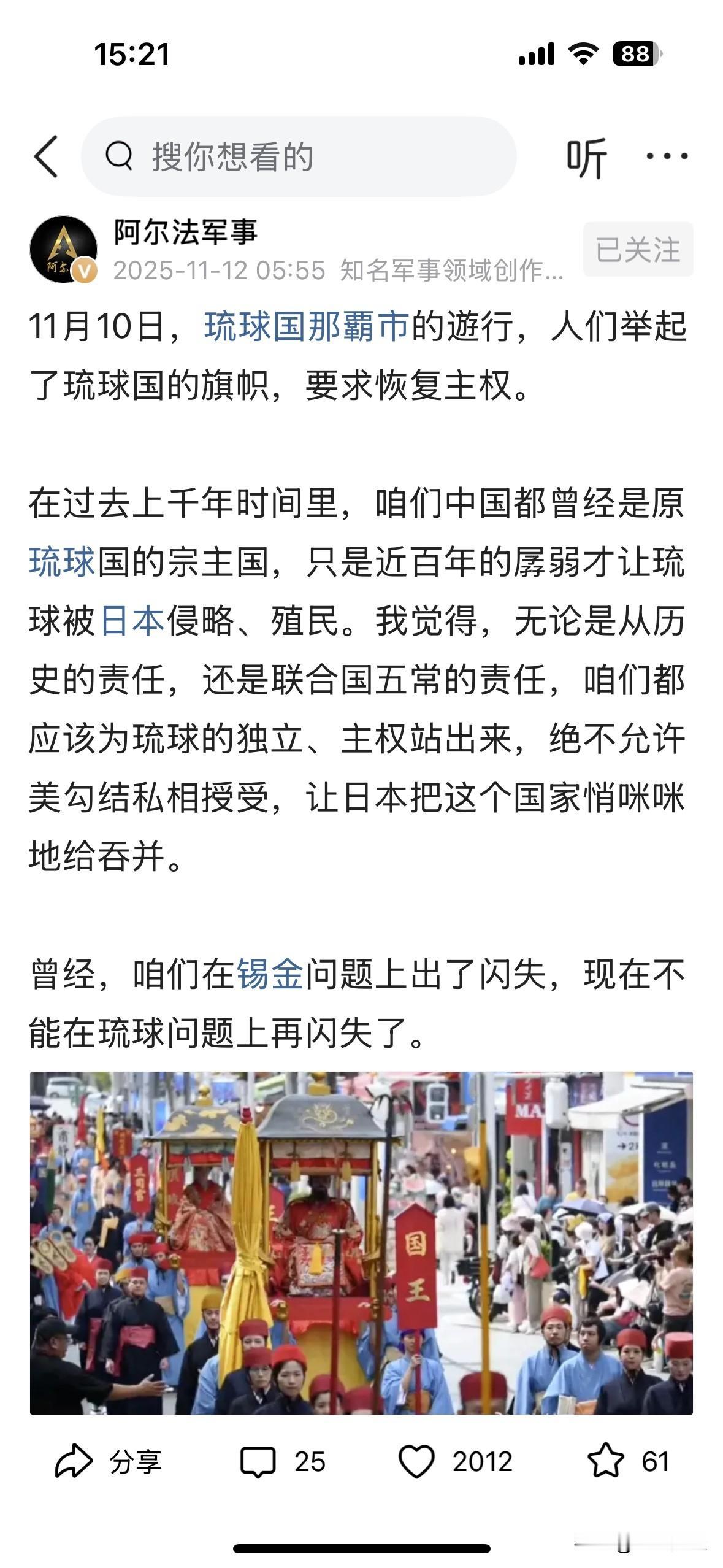 琉球群岛寻求宗主庇护的事情早已有之,此事对于曾经的宗主囯的来说,并不需要太急。 毕竟时间过了这么久。目前是先上点药水,让小日子先麻烦的过日子。 等个十年、二十年,老美守在琉球岛的驻军会突然发现,周边游弋的都是航母、055大驱,头上都是6代战机时。 彼时美驻军非但毫无意义,而且费钱费命,估计老美会退出驻军。 到时可以提上日程来解决,琉球或许会成为我国的第三个岛省,水到渠成。