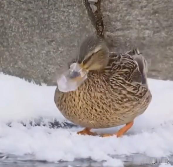 你看它缩着脖子、晃着脑袋的样儿,估计连张嘴叫都费劲,那冰壳子黏在嘴上看着就硌得慌。大冬天的小动物太遭罪了,谁能帮忙给这冰化了啊,这小家伙再这么冻着可太可怜了!