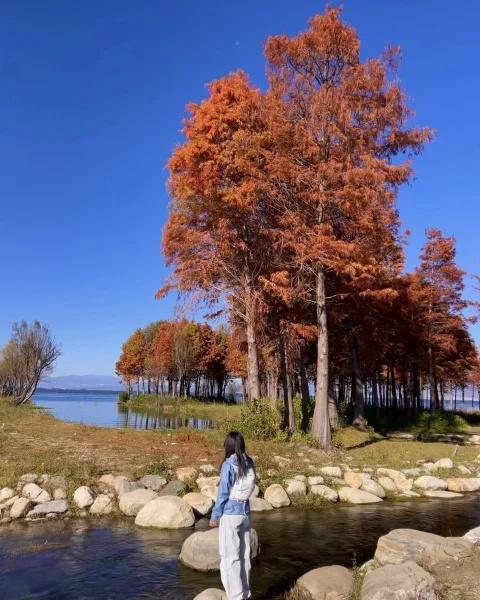 秋天🍂环洱海骑行➕徒步才是大理游玩天花板! 对于每年都会来大理的资深玩家来说 大理吸引人的从来都不是古城 而是独特迷人的自然风光-苍山和洱海 苍山不必说徒步到山顶的风光超绝对体力要求很高 相对来说洱海更平易近人一些 - 🩵分享我每年都会玩的路线👇 个人认为是大理最正确的打开方式 🌟崇久邑村-海舌公园的环洱海生态廊道段(全程约16km) 🚴♀️用骑行-(电瓶车)-徒步的方式来游玩 理由:风景比起地中海不逊色的,相信我!里面的自行车电瓶车随时可以停也可以过一小段就可以换个交通工具(沿途有很多咖啡厅可以随时停下来喝杯咖啡跟友人边聊边玩)游玩起来也很方便 🕰️游玩时间13:00-19:00,悠哉徒步骑行拍照都兼顾以及看落日 🍂在每年的10-12月 秋高气爽 风景超美!! 风景堪比地中海环海 👉分享几个人少景美精华点: 1.崇久邑 相比起上面两个离古城更近些,也是出发点,有栈道,除了红水杉这里还是拍水性杨花的好位置 2.双鸳溪 大面积的水衫