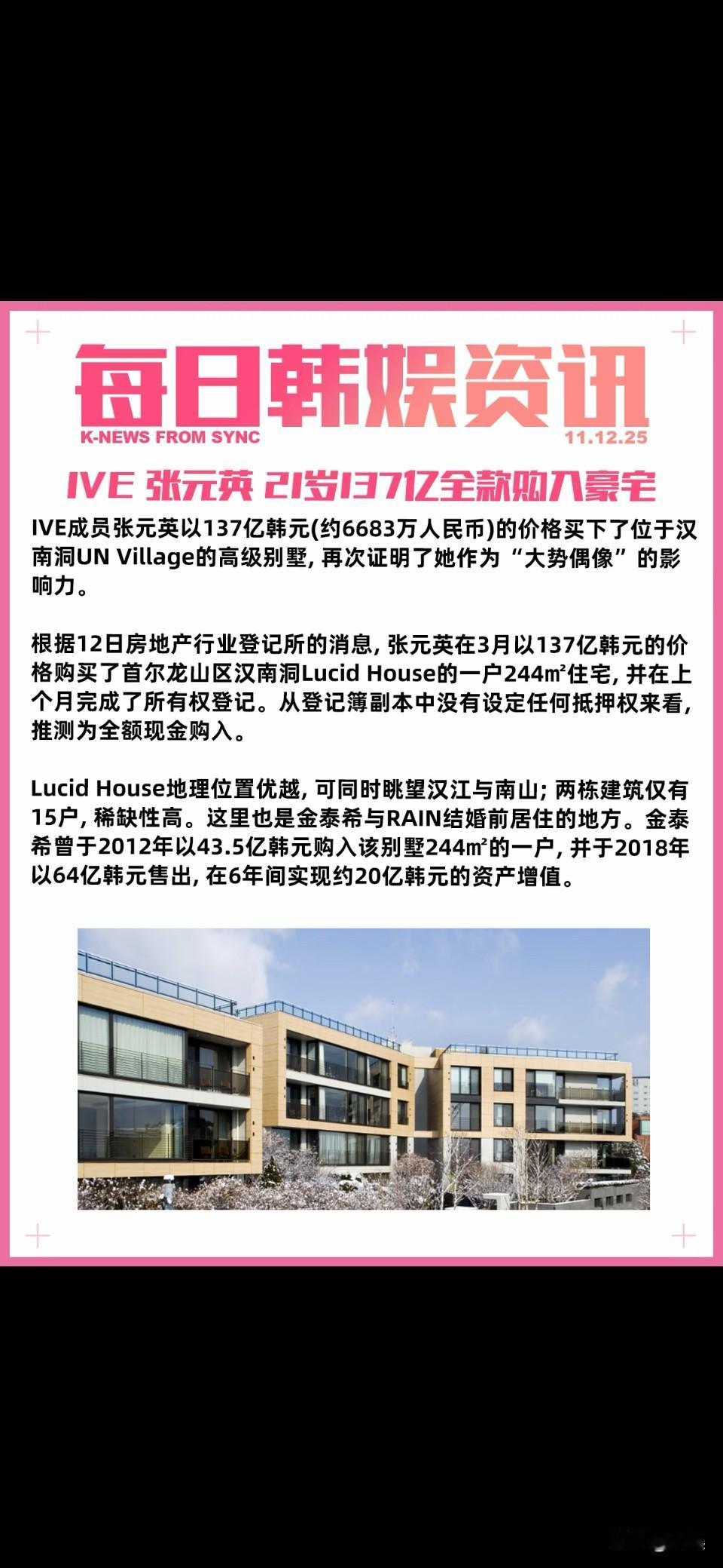 韩网热议 张元英五代首位买房的爱豆。。这人生真的很精彩啊,有颜有钱有名声有地位,羡慕![可怜] 之前一直在争五女一,现在看我倒是觉得也没啥争的必要了,圆没有这个称号也一样很火过的很幸福[可怜] 这下她的粉丝可以放心了,之前不还在担心她分成拿得少吗![吃瓜群众]张元英 超级爱豆 张元英 女五一