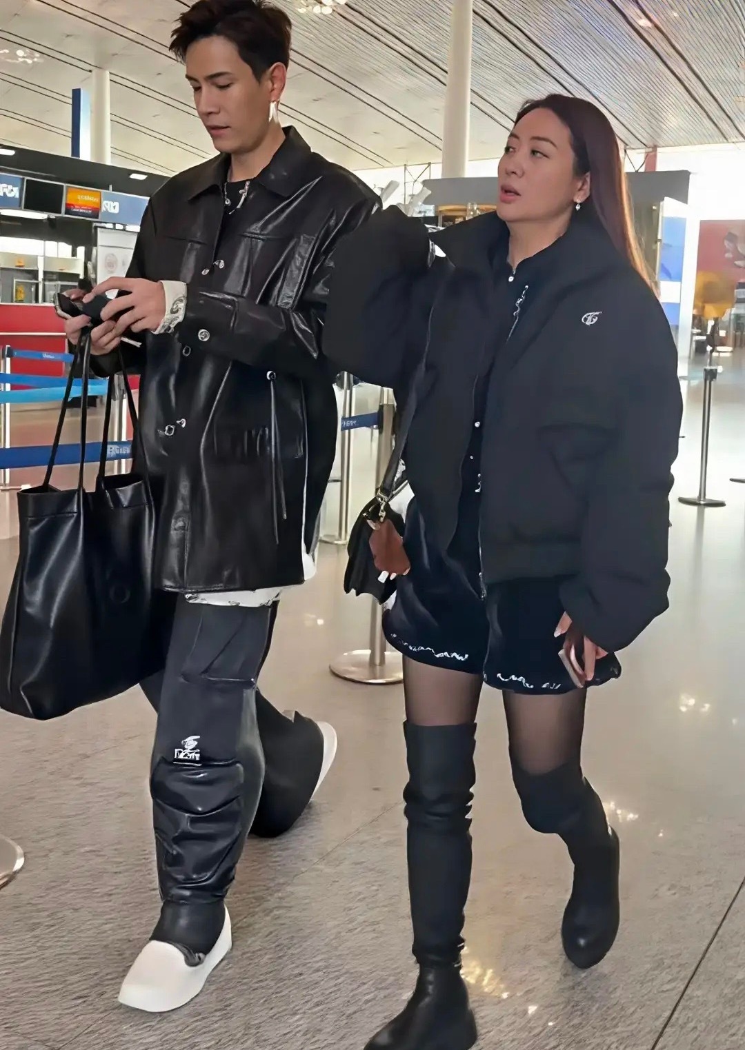 经超和老婆牵手出门,45岁小李琳不化妆憔悴,生两个孩子腿还很细!