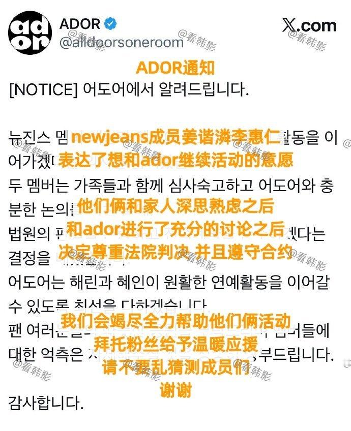 新裤子另外三个人也宣布回归ADOR了,但是单方面的,人ADOR还没回复。。有点急