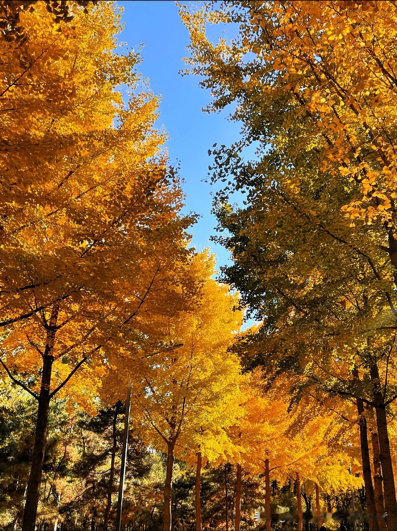 抬头看见这片银杏,金黄裹着浅绿把蓝天衬得透亮,风一吹碎金似的飘。 低头踩着铺了层的叶,“咔嚓”脆响裹着暖香往鞋缝钻。 平时赶路总慌,今天慢一步才觉:好风景哪用追打卡点? 路边这阵叶响、脚边这层软黄,没预谋的撞见,比刻意寻来的更熨帖。 寻常日子里,这种不用费力的好看,最勾人念想。