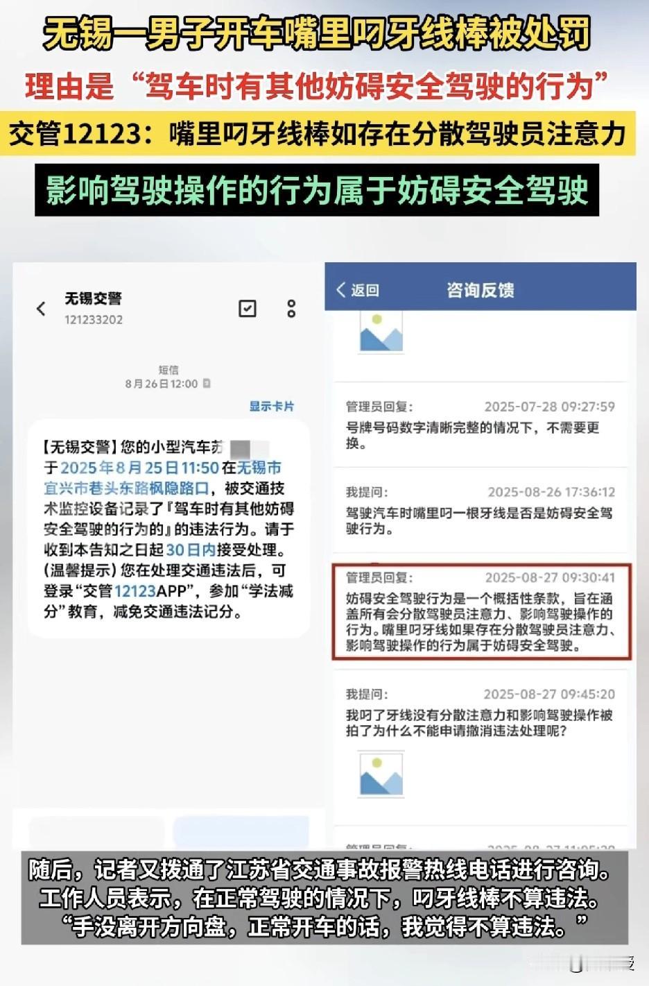 无锡交警 人才啊 开车叼牙线 也要罚款?[震惊][震惊][震惊]