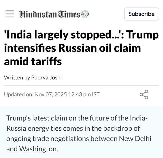 印媒:特朗普称印度”基本上停止了购买俄罗斯石油” 最近几天,美国总统特朗普又在白宫媒体会上放话,说印度基本上已经不买俄罗斯的石油了。这话一出,印度媒体立马跟进报道,《印度斯坦时报》官网11月7日就发了篇长文,直指特朗普强化了对印俄能源贸易的看法。特朗普这回不光重申,还顺带提了明年可能去印度访问的事儿,听着像是在给美印贸易谈判加点筹码。说实话,这事儿搁在2025年这个节骨眼上,挺有看头的,因为全球油价刚因为美国新制裁俄罗斯而蹿升6%,印度作为大买家,动向直接牵扯到能源链条的稳定性。 特朗普重返白宫后,美国优先政策没变,贸易保护主义照旧使劲儿。8月份,他就对印度进口商品甩出50%的关税,其中25%是专冲着印度买俄罗斯石油和军火去的。他直言,这些进口就是在变相给俄罗斯的乌克兰行动添油加醋。印度呢,作为世界第三大石油进口国,2024年从俄罗斯进口的原油高达527亿美元,占总进口的近四成。这数字听着吓人,但对印度来说,俄罗斯油便宜啊,折扣价帮着稳住了国内通胀和燃料成本。结果呢,关税一锤定音,印度炼油厂的订单表上俄罗斯货的份额开始缩水。 特朗普的声明不是空穴来风。10月中旬,他就先声称莫迪总理向他保证,印度很快会停掉对俄石油贸易。那时候,美印谈判正热火朝天,美国要印度开放农业市场,印度则想多卖IT服务和药品。特朗普在空军一号上对记者说,这是个大进步,暗示印度会配合。转眼到11月7日,他升级说法,从“很快暂停”变成“基本上停止了”。数据也佐证了点:根据Kpler船舶追踪,今年11月俄罗斯对印原油出口预计只有80.5万桶/日,比上月腰斩,创三年新低。印度主要炼油企业,像Reliance和Indian Oil,大多跳过了12月份的俄罗斯原油招标,转而从美国和海湾国家补货。举例,沙特和伊拉克的油轮开始增多,印度总进口量不降反升,10月份达到2303万吨,同比涨18%。 印度官方的反应挺低调的。外交部发言人兰迪尔·贾斯瓦尔直接否认了特朗普说的领导人通话细节,说不知道莫迪和特朗普最近有过什么交流。但这不等于全盘否定,印度能源部的数据显示,今年俄罗斯油占进口36%,但从10月底起,订单确实在回调。为什么?除了关税压力,美国还对俄罗斯两大油企Rosneft和Gazprom Neft下了重手,二级制裁让印度银行和船公司头疼,生怕沾边就中招。结果,印度炼油厂的合同审视期延长了,部分转向美国页岩油,虽然贵了点,但避险优先。全球油市也跟着抖,布伦特原油一度冲到每桶85美元,印度消费者短期内可能得多掏腰包买汽油。 这事儿搁在美印关系大背景下,更得细品。特朗普上台后,美印战略伙伴关系没断,但贸易摩擦升级了。印度是美国在印太对抗中国的关键棋子,四方安全对话(QUAD)里印度出力不少,从疫苗援助到南海巡航。但能源这块,印度总得顾自家事儿。俄罗斯油不光便宜,还帮印度平衡了对中东的依赖。2022年俄乌冲突后,印度就成了俄罗斯石油的最大买家,贸易额从2020年的54.8亿美元飙到2024年的638亿美元,翻了12倍。特朗普看不惯这点,他觉得印度在帮普京续命,直接用关税卡脖子。莫迪政府呢,表面上平衡外交,私下里调整采购,最近还和美国谈起用卢比结算石油的机制,绕开美元制裁。 谈判进展看着乐观点。特朗普11月11日又说,美印离“公平协议”不远了,关税可能降到25%,前提是印度继续减俄油进口。他还暗示,印度会“重新爱上我们”,听着像老朋友间的讨价还价。印度商务部官员私下透露,谈判氛围融洽,焦点在知识产权和数字贸易上。美国要印度买更多波音飞机和苹果产品,印度则推销仿制药和软件服务。相比之下,俄罗斯那边压力山大,中国也开始砍单,燕昌石油据说停了俄罗斯货,这对莫斯科经济是双重打击。印度这步棋,走得稳当,既没彻底翻脸俄罗斯,又给美国台阶下。 说到底,这波操作反映了全球能源博弈的复杂性。俄罗斯石油出口受制裁挤压后,印度这样的新兴市场成了缓冲带。但特朗普的强硬作风,让印度不得不加速多元化。长远看,印度计划到2030年把可再生能源占比提到50%,建更多太阳能和风电场,减少对化石燃料的依赖。但短期内,油价波动直接影响印度7亿中产的钱包。国际能源署的数据显示,如果印度俄油进口再降20%,全球供应会松点,但地缘风险更高。乌克兰那边,美国援助还在加码,印度保持中立,但防务合作没停,最近还谈起联合军演。