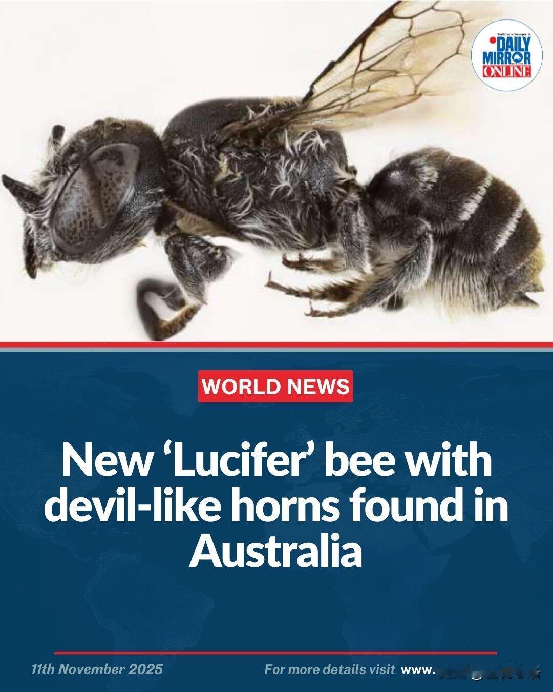 我的天!澳洲居然发现新蜜蜂了! 这小家伙长着俩“恶魔之角”, 也太特别了吧! 不会是黑暗大陆来的吧[笑哭] 研究团队直接给它取名“路西法切叶蜂”, 据说因为研究员是《路西法》的忠实粉丝~ 谁能想到蜜蜂界还藏着这种“酷盖”! 小小的身体带着标志性尖角, 刷新了对蜜蜂的认知呀~ 新物种真的太神奇了, 不知道后续还能发现什么新奇生物!
