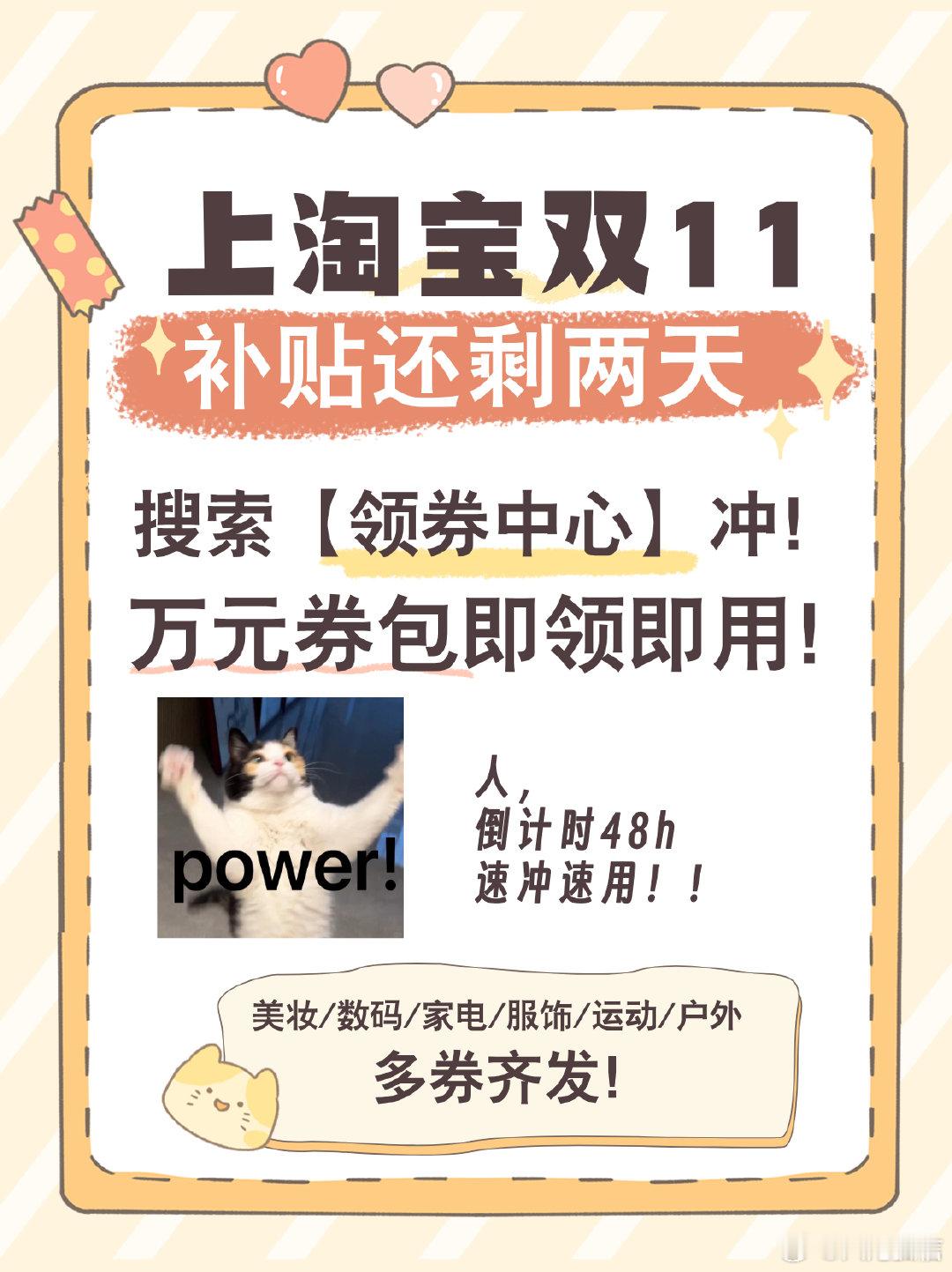宝妈们速来!带娃没空薅羊毛?没关系,淘宝双 11 补贴还剩两天,最后 48 小时(即日起 - 11 月 14 日)巅峰冲刺,懒人也能轻松省!官方立减,8.5折起,再叠 9 折消费券,天猫双 11 的优惠太懂带娃不易了!搜【超级秒杀】早 10 晚 8 抢,母婴大牌爆款 5 折到手,给娃买好物不心疼钱包,这波必须冲!