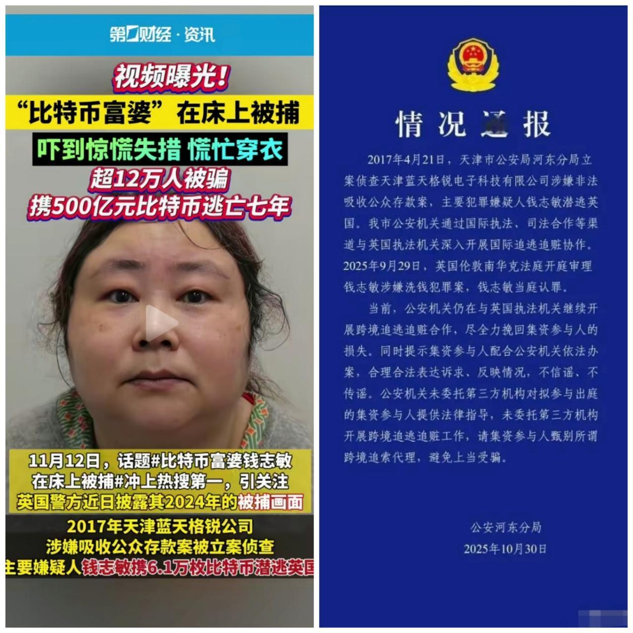 超过12万人被骗,非法集资500多亿,换成6.1万比特币逃往英国,2024年被英国警方抓捕,被捕时正躺在床上,吓得惊慌失措,慌忙穿衣。虽然中国与英国执法机关合作追赃,但我对拿回6.1万比特币持保守态度,英国方面不会那么容易把6.1万比特币交给中国。 但是,我认为英国方面会很爽快的把钱志敏交给中国。我个人是不愿意钱志敏回国的,不管她是不是回国蹲监狱!我希望她在英国蹲监狱,花英国人的钱蹲英国人的监狱,别回来中国花中国纳税人的钱,出狱以后就在英国流浪,让她接受英国的黑人、毒品、暴力的洗礼,然后再前往天堂享受! 现在世界上每个国家都缺钱,因此,大家对这种非法的“香饽饽”会毫不留情的下手。这帮人在中国骗钱,然后换成比特币跑出去,之后比特币在外国被没收,最后被当做垃圾一样扔回国。耻辱啊!