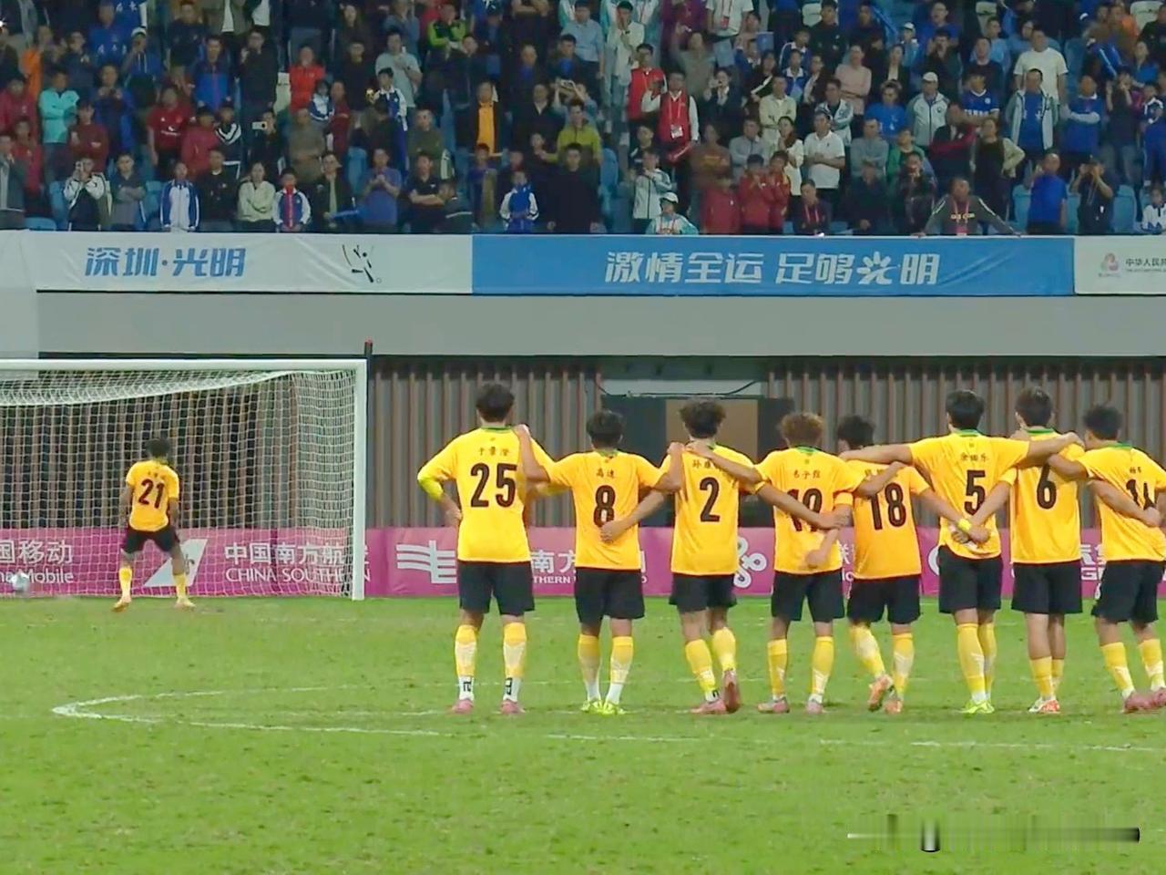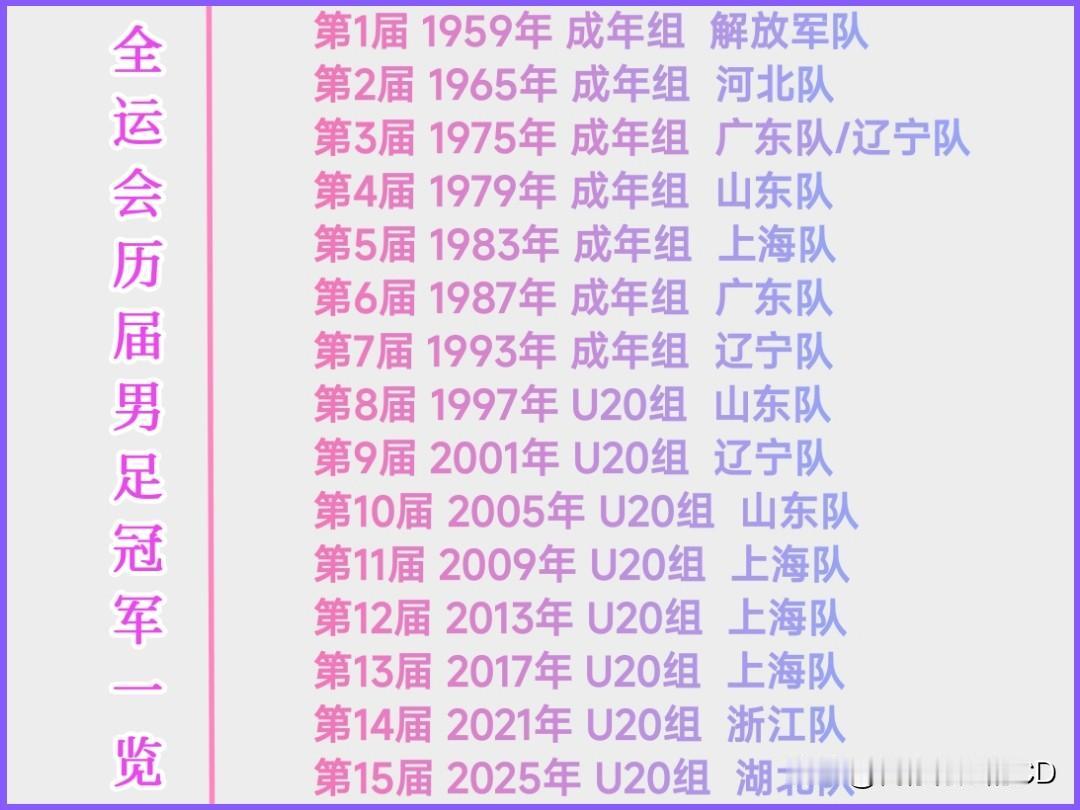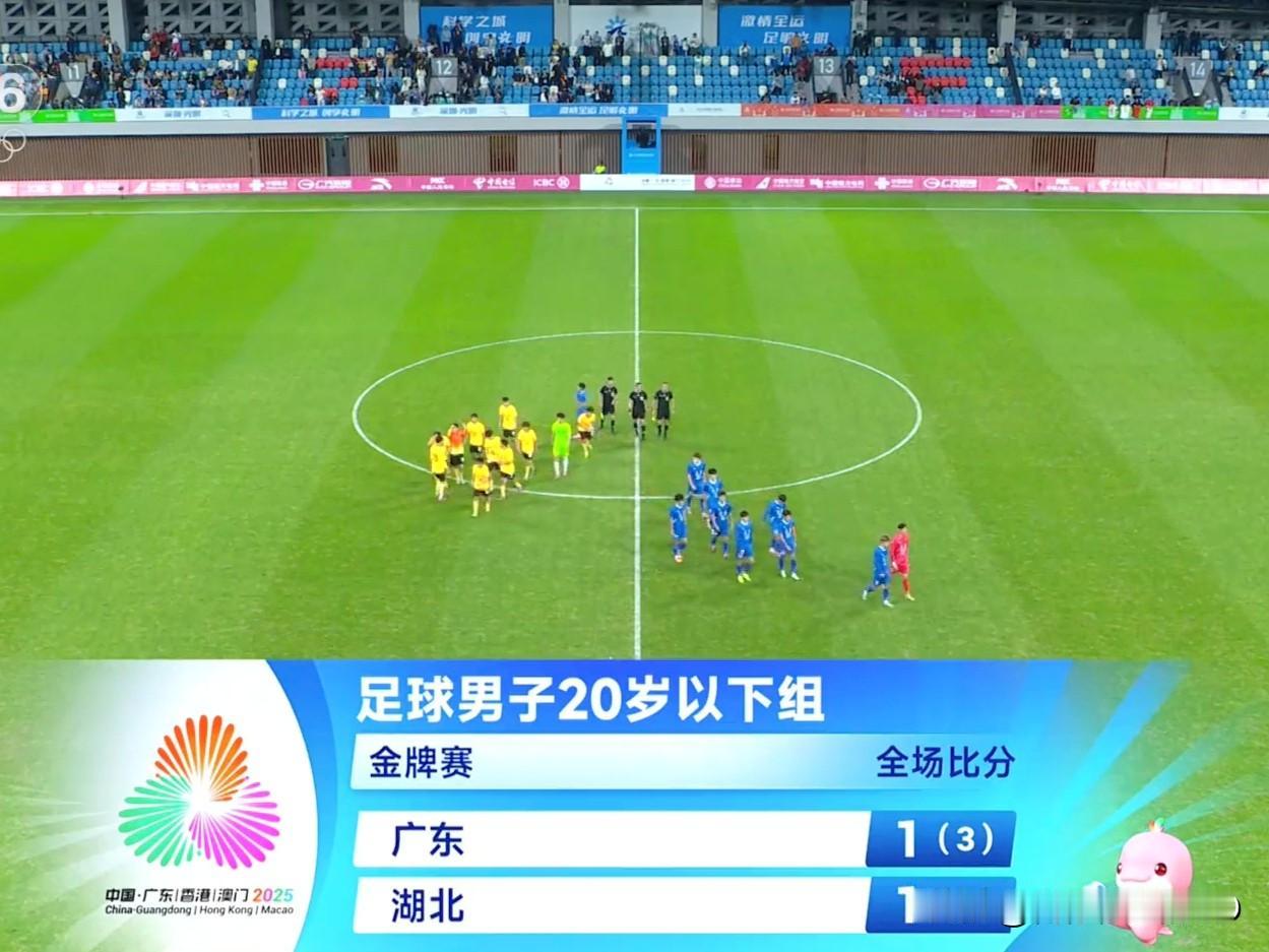 全运会3大球第2个冠军诞生! 湖北队点杀东道主广东队,第一次夺得全运会男足冠军! 今晚,第15届全运会男足U20组决赛在深圳市青少年足球训练基地举行,广东队与湖北队在120分钟内战成1:1,最终湖北队在点球大战中以5:3战胜广东队获得冠军。在较早进行的季军争夺战中,上海队和山东队在90分钟常规时间内互交白卷,上海队在点球大战中以5:4击败山东队取得第三名。 半决赛中,广东队依靠张志雄在补时阶段的点球1:0淘汰上海队,而湖北队同样凭借范绪林在补时阶段的点球1:0绝杀山东队。 全运会男足夺冠次数排行为: 上海 4次 山东 3次 辽宁 2.5次 广东 1.5次 解放军/河北/浙江/湖北 1次 注:1975年第3届全运会男足因故产生并列冠军广东队和辽宁队,各计0.5次。 全运会 广东香港澳门承办第十五届全运会 U20全运会男足 足球比赛