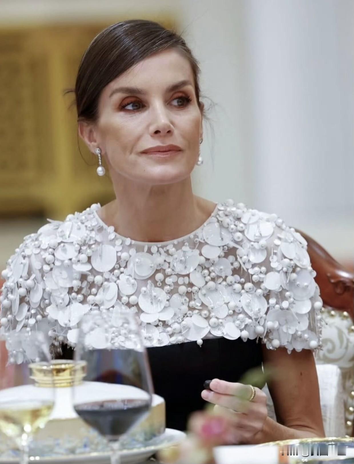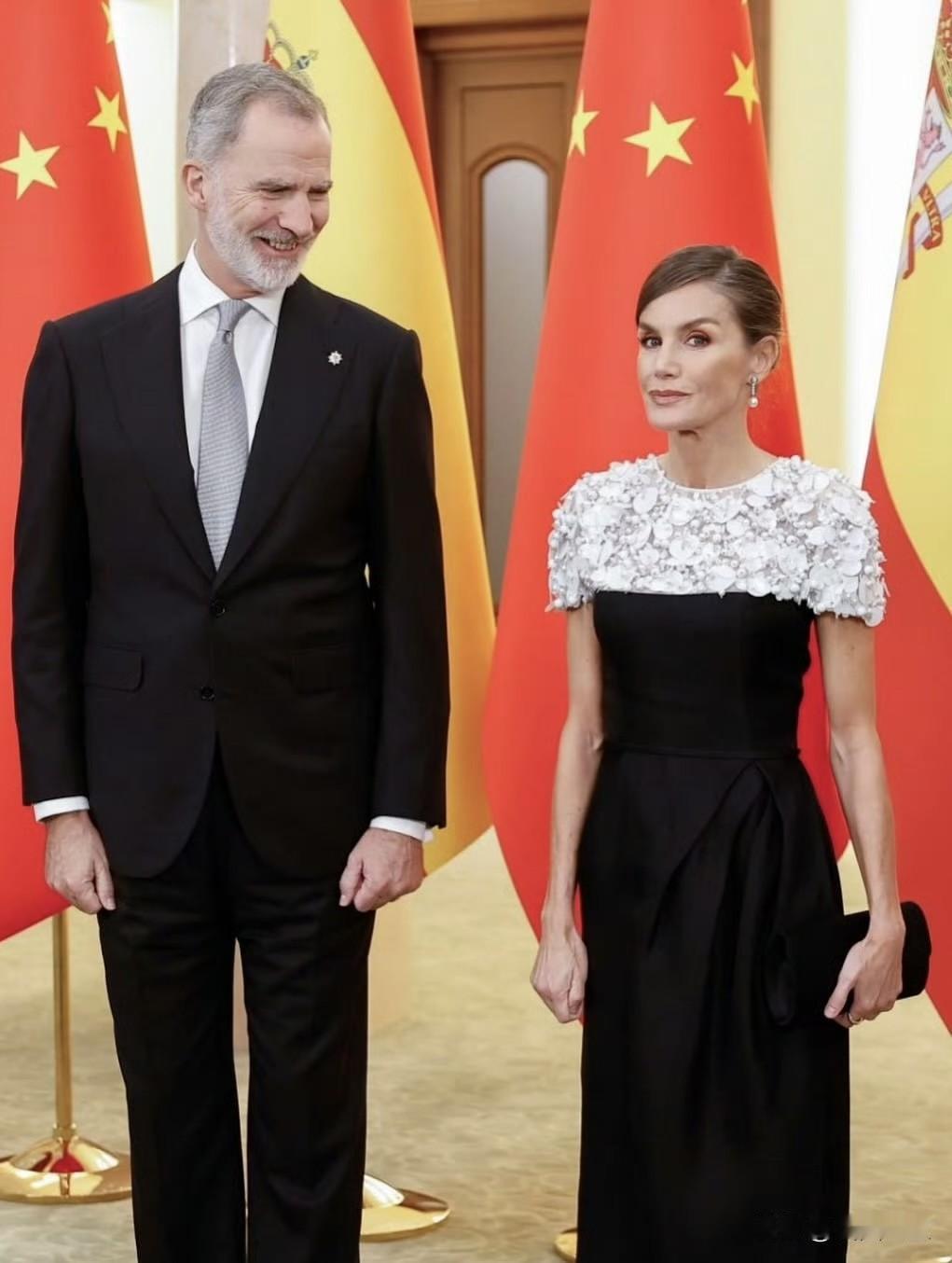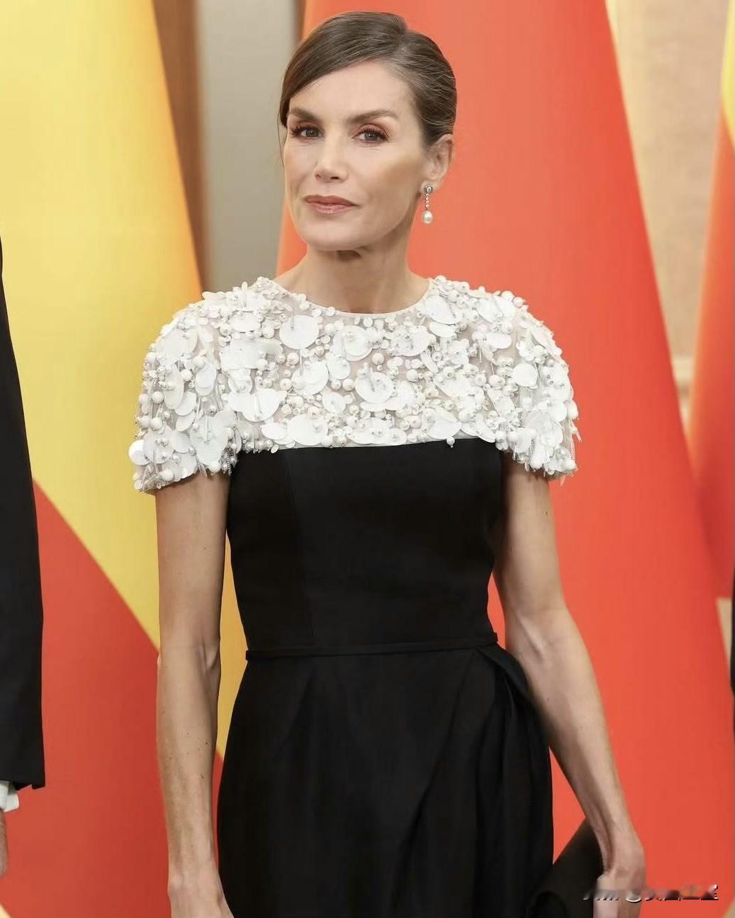 入乡随俗!西班牙莱蒂齐亚王后最新晚宴造型曝光。 11月12日,费利佩国王和莱蒂齐亚王后出席晚宴。 莱蒂齐亚王后一身黑白连衣裙亮相,盘发造型搭配珍珠耳环,非常简朴的一身装扮,却尽显优雅气质! 王室粉丝猜测的没错,此行莱蒂齐亚不会佩戴王冠,期待下次吧!