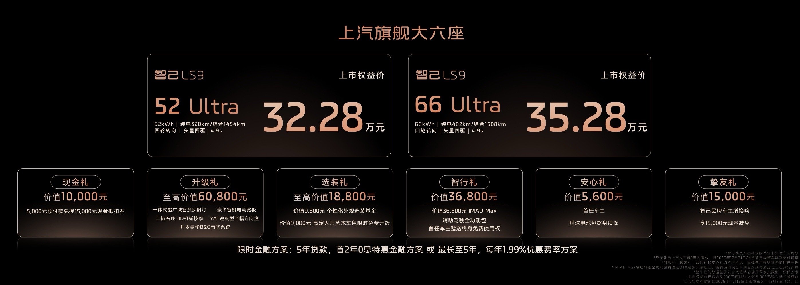 智己LS9正式上市了,这个车我前不久在川西开了1000多公里,体会还是非常深刻的。首先尺寸接近5米3了,确实很旗舰,并且车内的3.4kW的B&O音响以及机械的按摩都是很顶的配置。并且全系都是Ultra直接拉到满。另外整个车开起来呢还是很颠覆这种全尺寸SUV的传统印象,因为有非常大角度的后轮转向,所以开起来极其灵活,这是Polo级别的灵活性。同时底盘调的还是有不错的驾驶感,喜欢开车的人会比较中意。