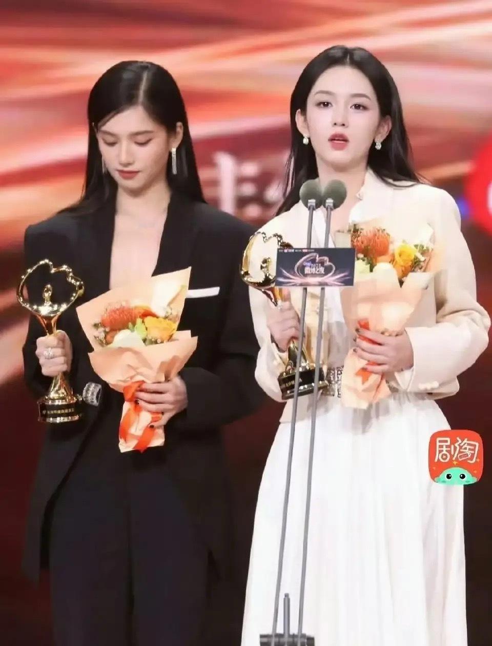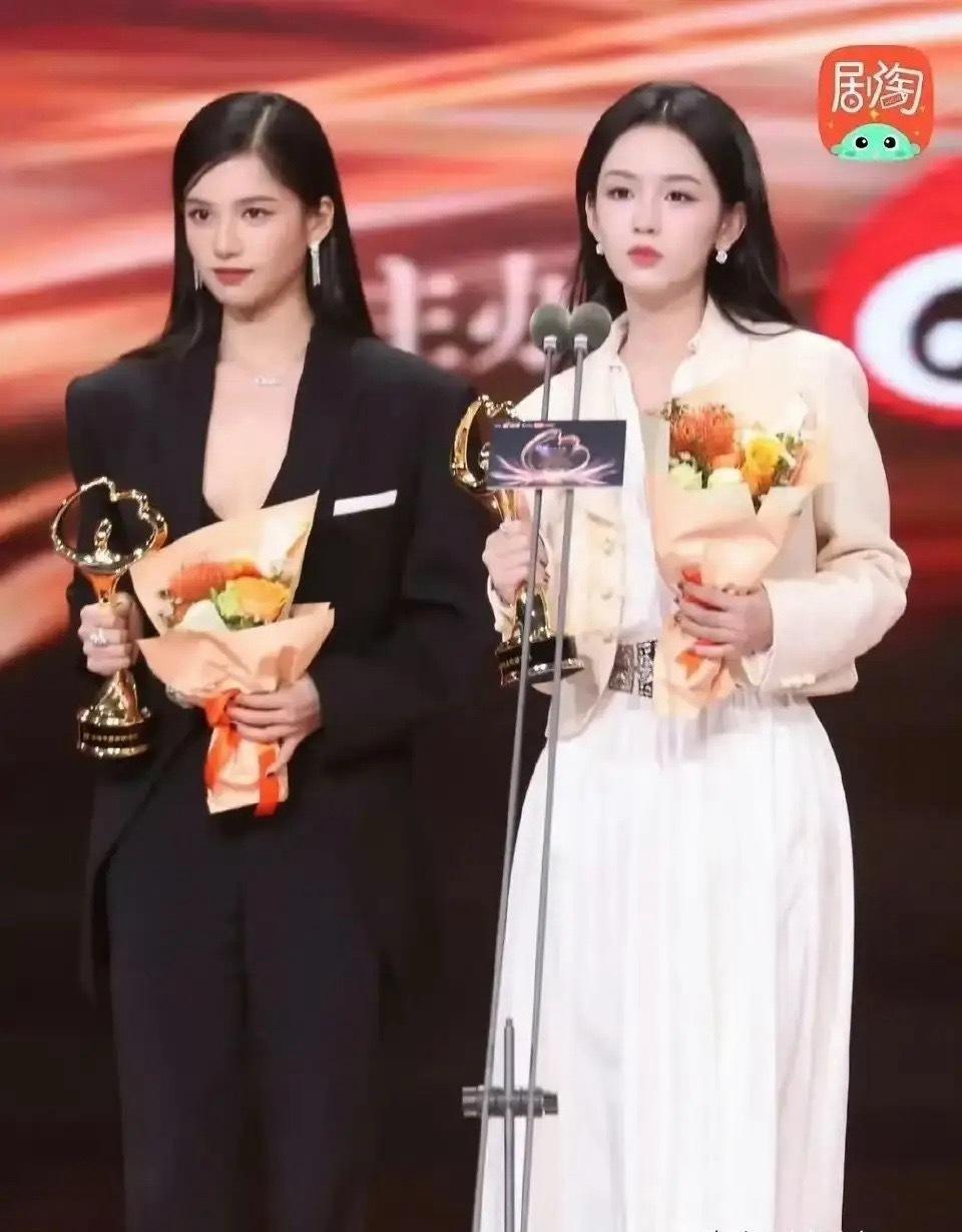 之前总觉得张婧仪和周也长得有点像,都是那种清冷挂的文艺脸。但这次同框一看——好家伙,完全不是一回事儿!张婧仪是那种带着故事感的温柔,像邻班学姐悄悄在你课本里塞了颗糖;周也却是自带棱角的清冽,像玻璃柜里最耀眼的那件艺术品。果然美人都是对比出来的!这下彻底分清了,她俩压根儿走的是两种氛围路线~