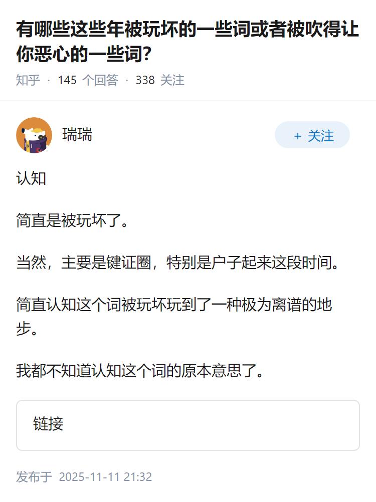 有哪些这些年被玩坏的一些词或者被吹得让你恶心的一些词?