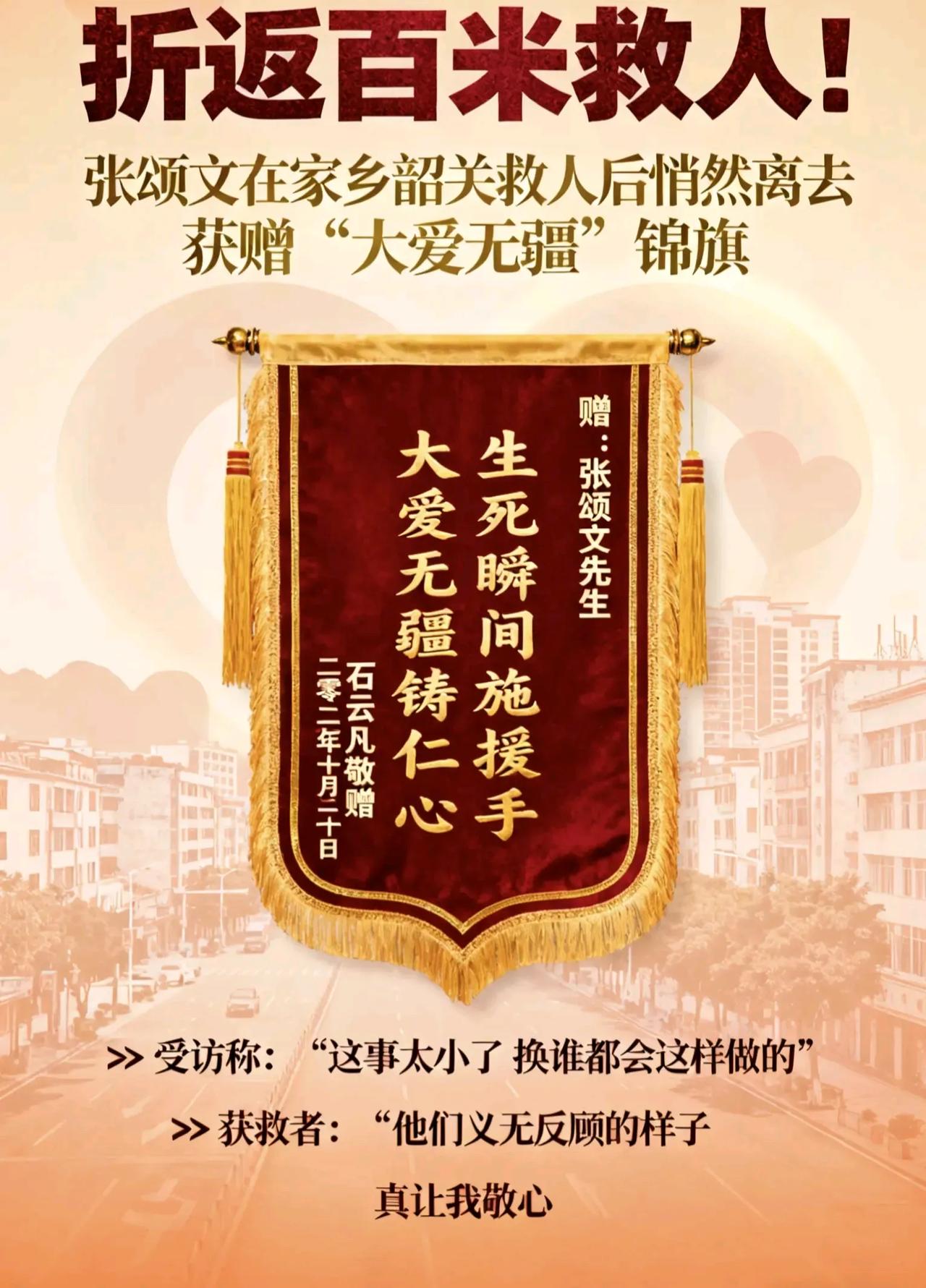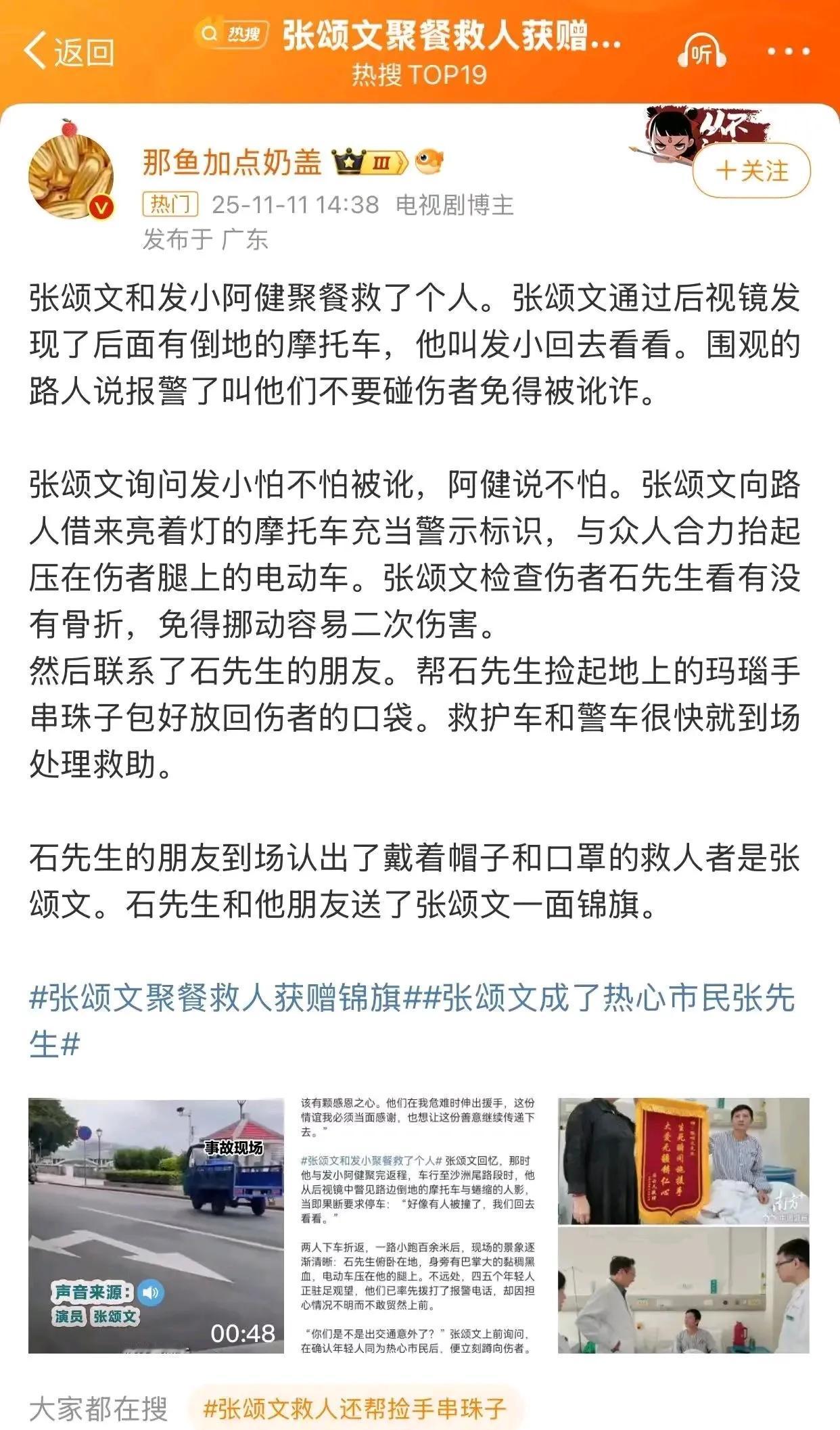 谁说明星只活在聚光灯下?广东韶关的一个路口,一场电动车事故打 张颂文啊张颂文 真的不知道怎么说你好 救人这事搁你这儿咋就跟喝水似的自然 那天凌晨韶关路口,有人骑电动车摔倒昏迷,你路过瞥见赶紧停车。 压腿的车抬起来,散落的手串一颗颗捡好,还帮着安抚伤者等救护车,全程没半点儿犹豫。 人家康复了拿着锦旗来谢你,你倒说这事儿太小,换谁都会这样做。现在好多人遇事先想“多一事不如少一事”,可你倒好,该帮就帮该扶就扶。 明星光环再亮能咋的? 这世道缺的不就是你这种,把善意当本能的普通人吗?演员 张颂文 帅气的张颂文