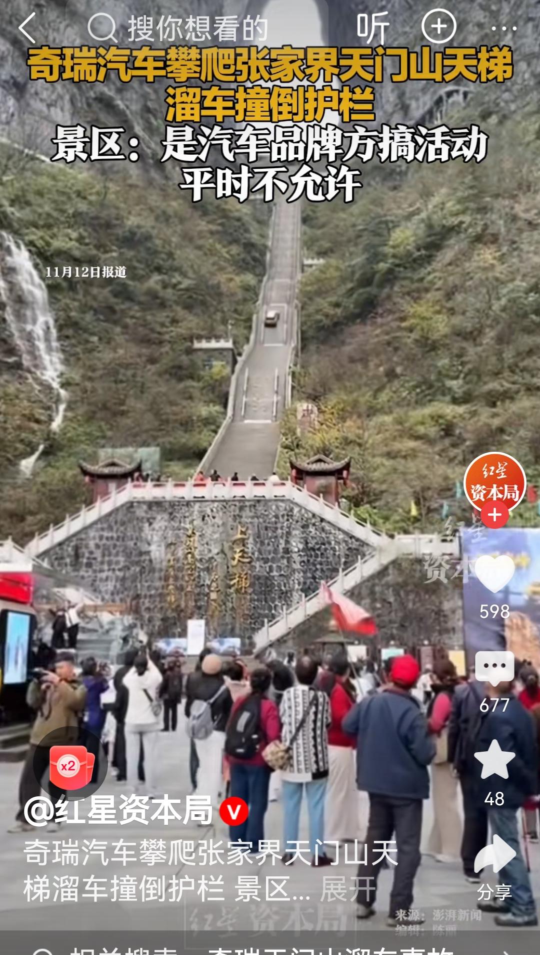天门山 天门 奇瑞汽车是想干啥 景区就随意让汽车去破坏台阶吗? 属不属于破坏公共财产