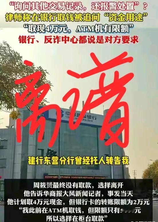 银行操作让人看不懂,客户取款还要被问资金用途,你管的也太宽了吧!打着反诈的名义行不规之事,每年几百亿的诈骗防住了几个?违法分子会去柜台取钱吗?以太低估人家的智商了! 银行在无限放大自己的权力,越来越没有边界感!