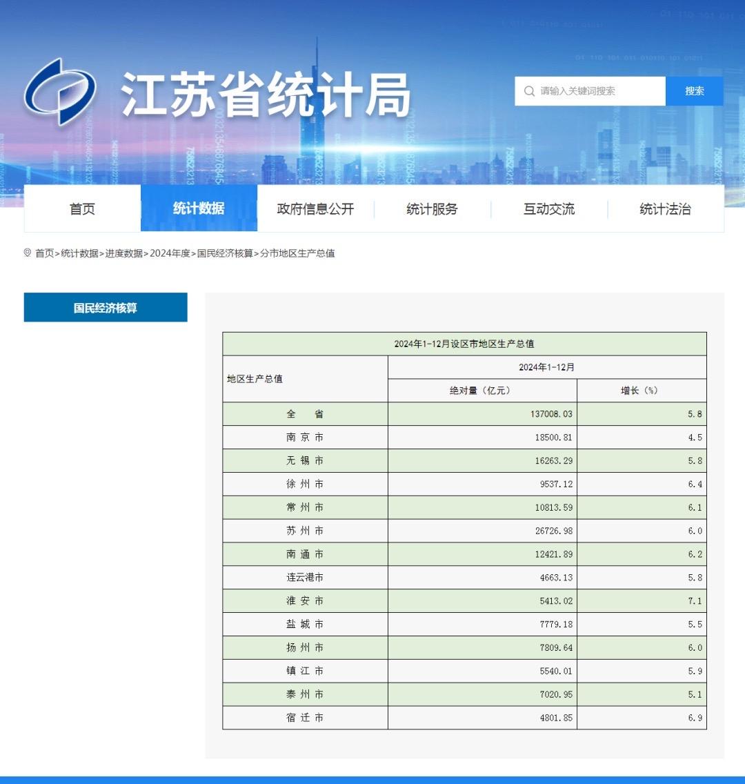 2024年,江苏省地区生产总值达13.7万亿元,增长5.8%。江苏计量单位一昆5000亿,一灌500亿,一灌有点不满了,南哥加油苏大强GDP