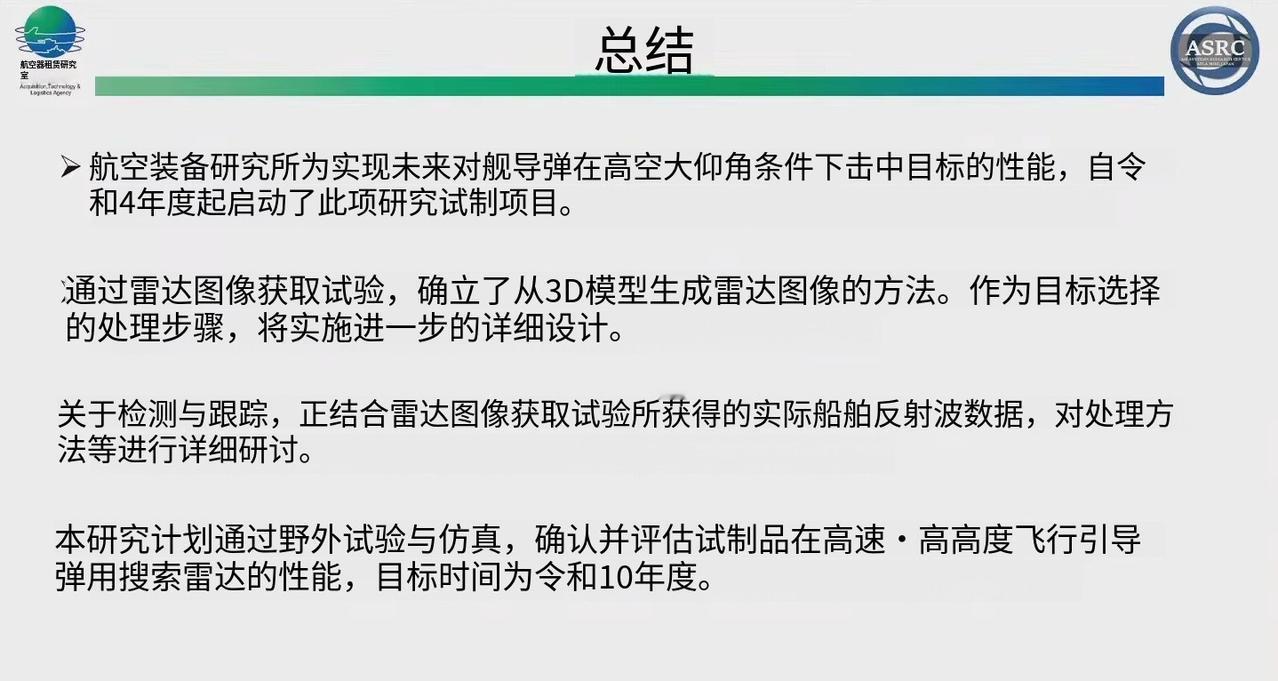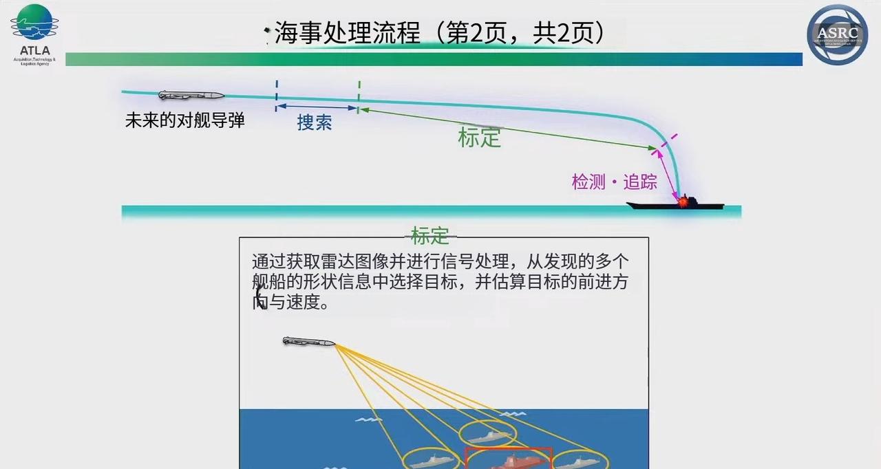 日本正为ASM-3超音速反舰导弹或未来的改进型号开发新型导引头用来攻击中国航母,根据日本防卫装备厅航空装备研究所导引技术研究部寻标器研究室的《高速高机动导弹用雷达成像目标探测研究》报告这种导引头将搭载于可以打击大型远洋军舰的高速、高精度反舰导弹,不过PPT的剪影明显是中国海军的“辽宁舰”或“山东舰”每天认识一件兵器烽火问鼎计划 超音速反舰导弹在高空飞行时阻力更小射程更远,但反舰导弹的雷达导引头在大俯角探测海面目标时会面临更强的海面杂波干扰,该研究利用类似合成孔径雷达的成像技术在导引头高速飞行中生成目标二维雷达图像;导弹可通过雷达图像匹配识别舰船形状,与预置数据库比对,从而区分杂波与真实舰船,还能用来识别定位多艘海面舰船中的重要目标,并在发动攻击时锁定目标的薄弱位置增强打击效果。