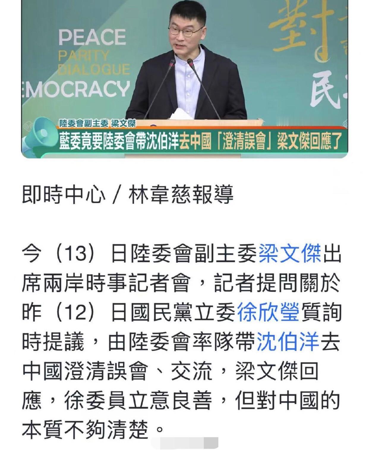 台湾陆委会表示,对不起沈伯洋,面对大陆的立案侦查以及之后可能会有的全球通缉,他们无能为力,希望沈伯洋能够“坚强勇敢”。 台湾陆委会发言人这样说道:“沈伯洋委员…呃、咳…就是…我们希望他…我们希望他勇敢坚强,一定要勇敢坚强…。” 沈伯洋:“……。” 而面对国民党徐欣莹提议,由陆委会率队带沈伯洋去大陆自首,并澄清误会、进行交流时,陆委会梁文杰回应称,徐欣莹的用意良善,但想法简单,对大陆的本质了解得不够清楚。 台湾陆委会的意思是,我就不交流,它这个陆委会的存在就是专门搞对抗的。