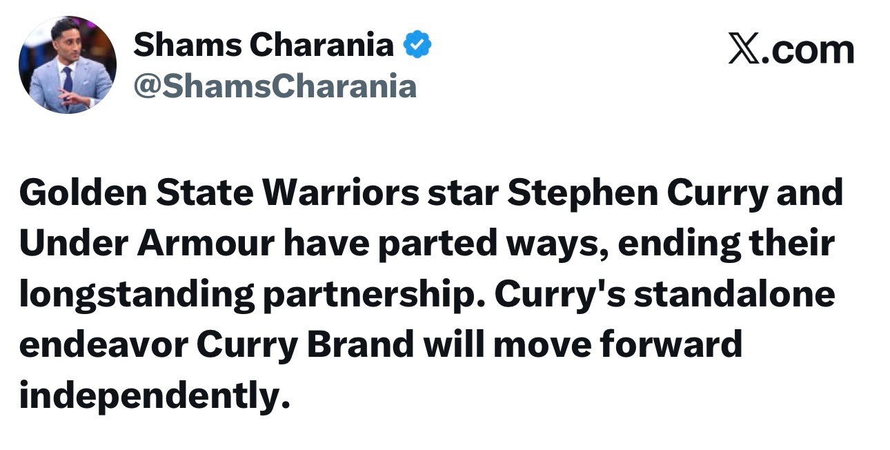 库里与安德玛分道扬镳,将经营个人品牌CurryBrand!