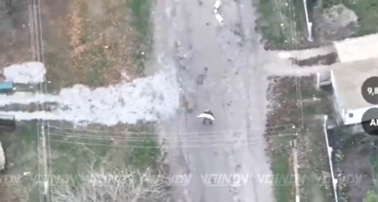 一名来自东部集团军第36集团军近卫第5坦克旅、代号“舞者”的士兵在第聂伯罗彼得罗夫斯克州丹尼洛夫卡展示一面旗帜。该镇完全被俄罗斯武装部队控制。