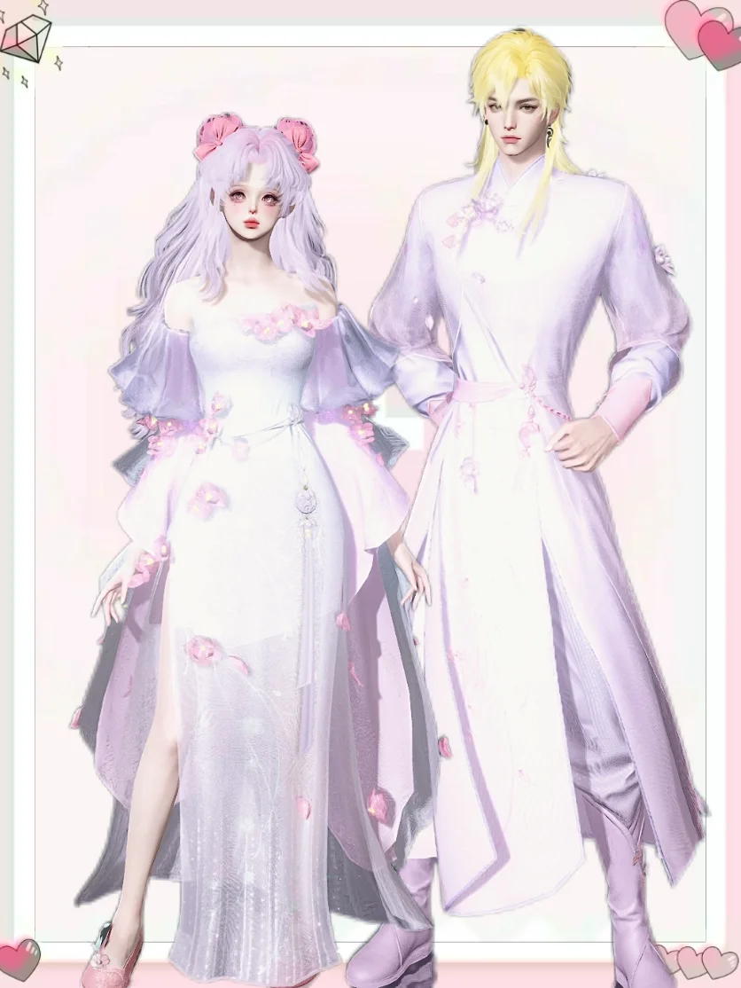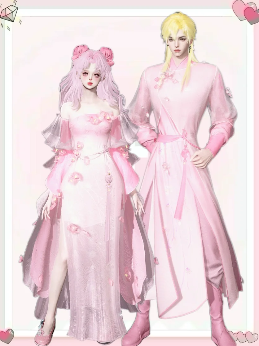 女号染的太多了,男号就根据装扮站热度选了三套来配,浓粉色可以搭发过的很多套女号哈~