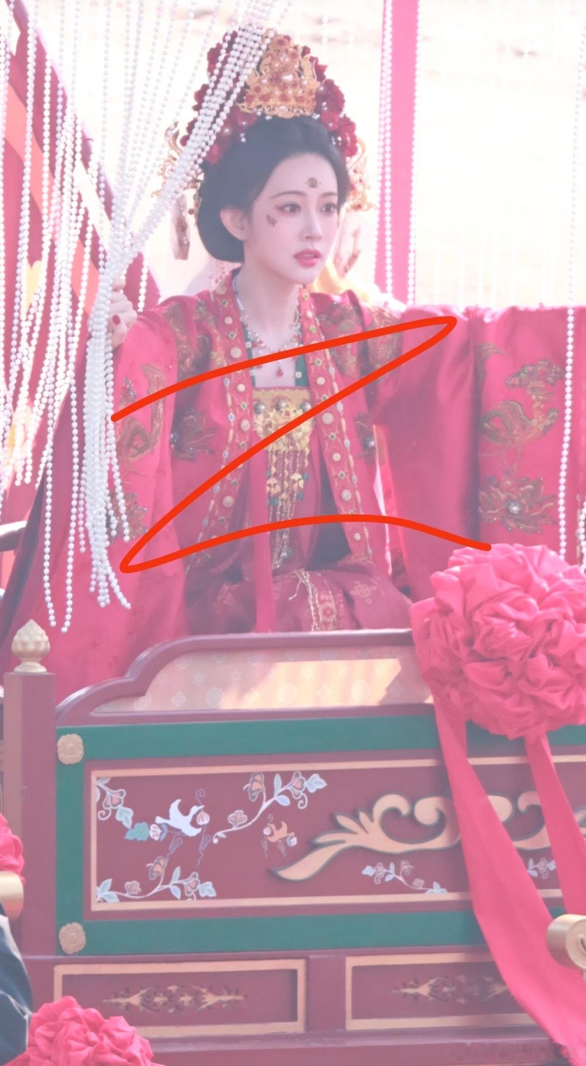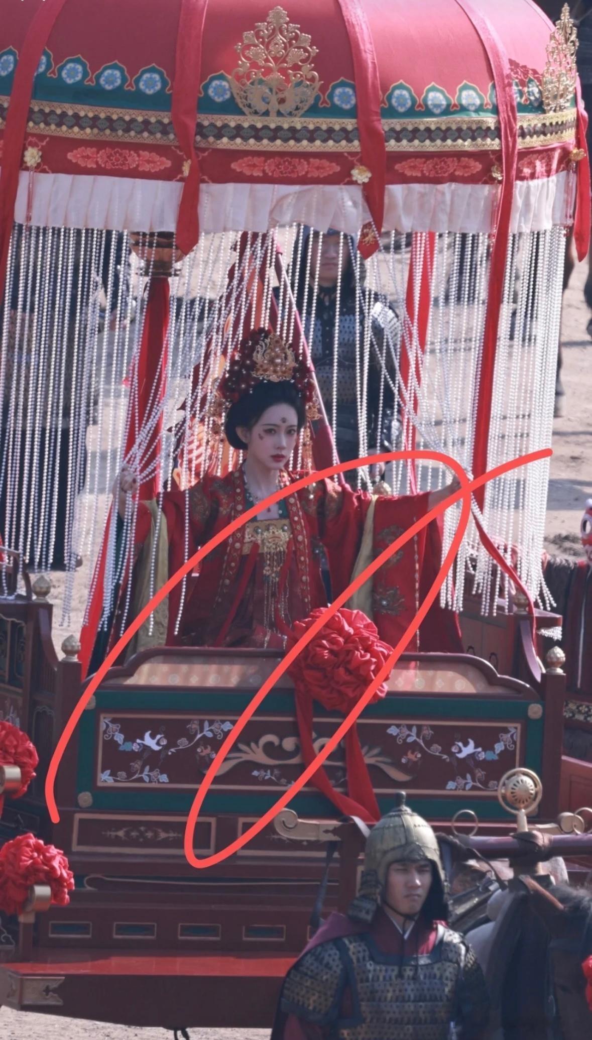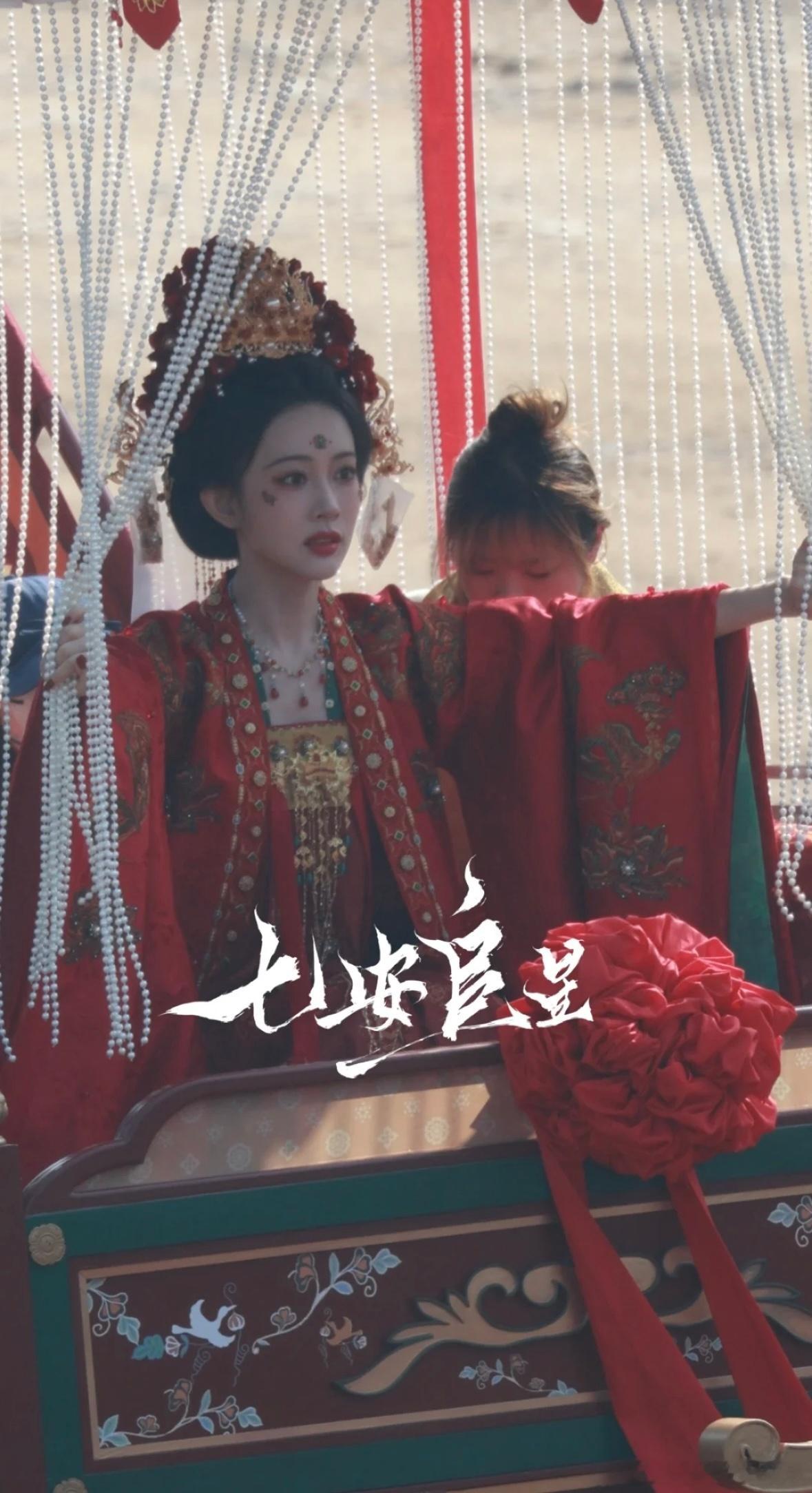 鎏金凤冠太吸睛!搭配红金织金刺绣礼服,凤凰牡丹点缀,盛唐公主的尊贵感拉满。