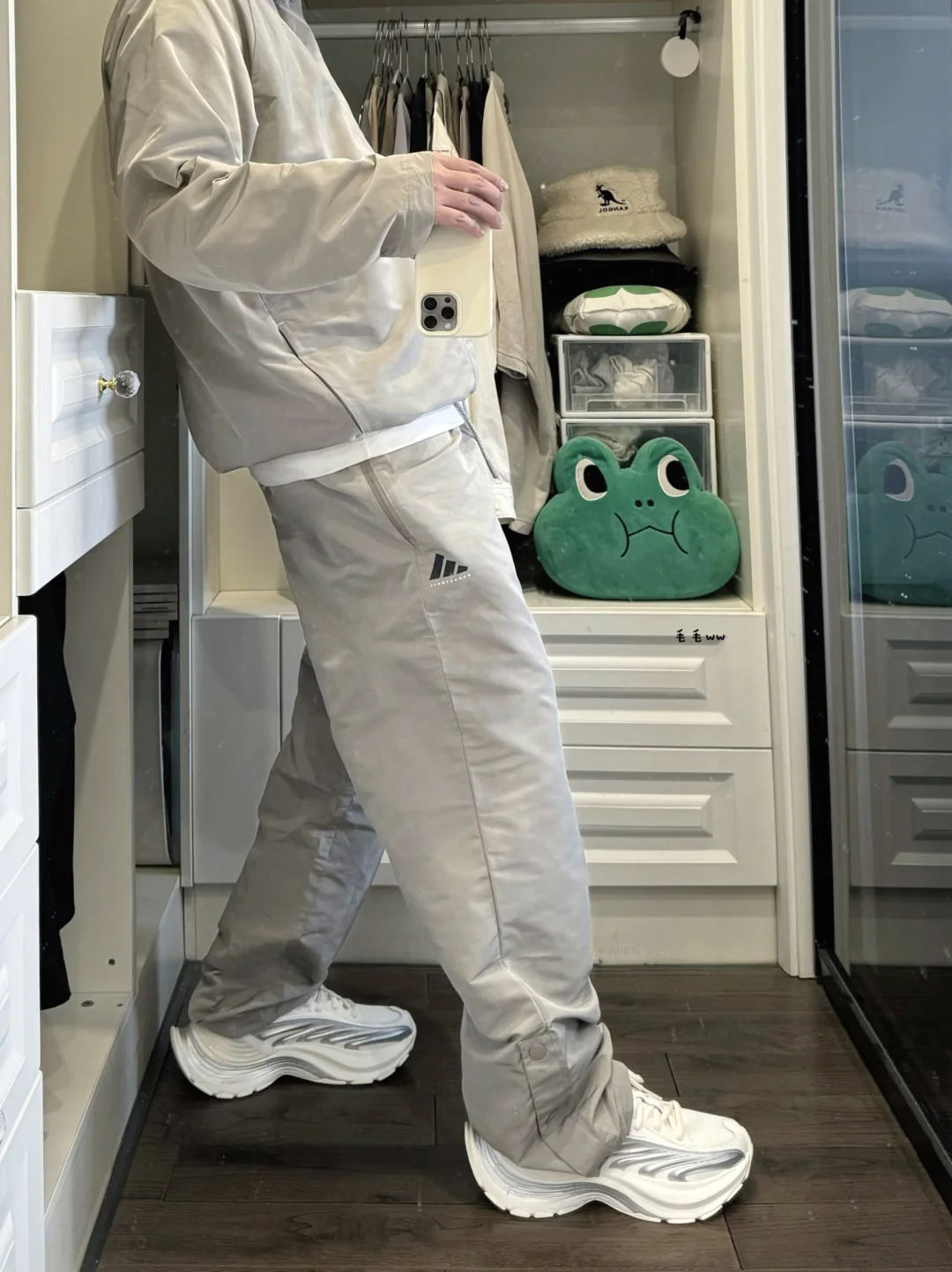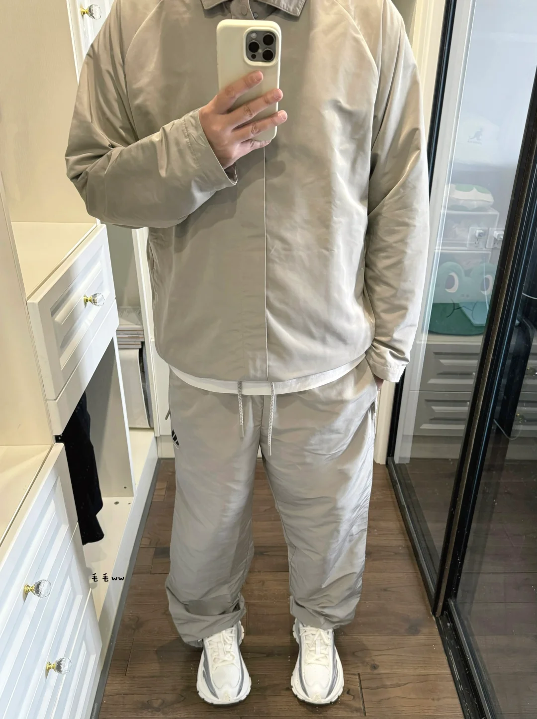 -沙色系套装,整体效果不错,低饱和度观感,属于耐看型;夹克仍然偏长,正面改为全拉链,排扣裤跟上一季没太大区别 . —————— . 👔Adidas Basketball / Chapter 02 // L . 👖Adidas Basketball / Chapter 02 // L . 👟Adidas XLG MTW // 42 . —————— . ✏️本人178cm75kg 球鞋尺码265mm(正常EU42) . 💭以上均为我个人观点,不喜勿喷,欢迎讨论。