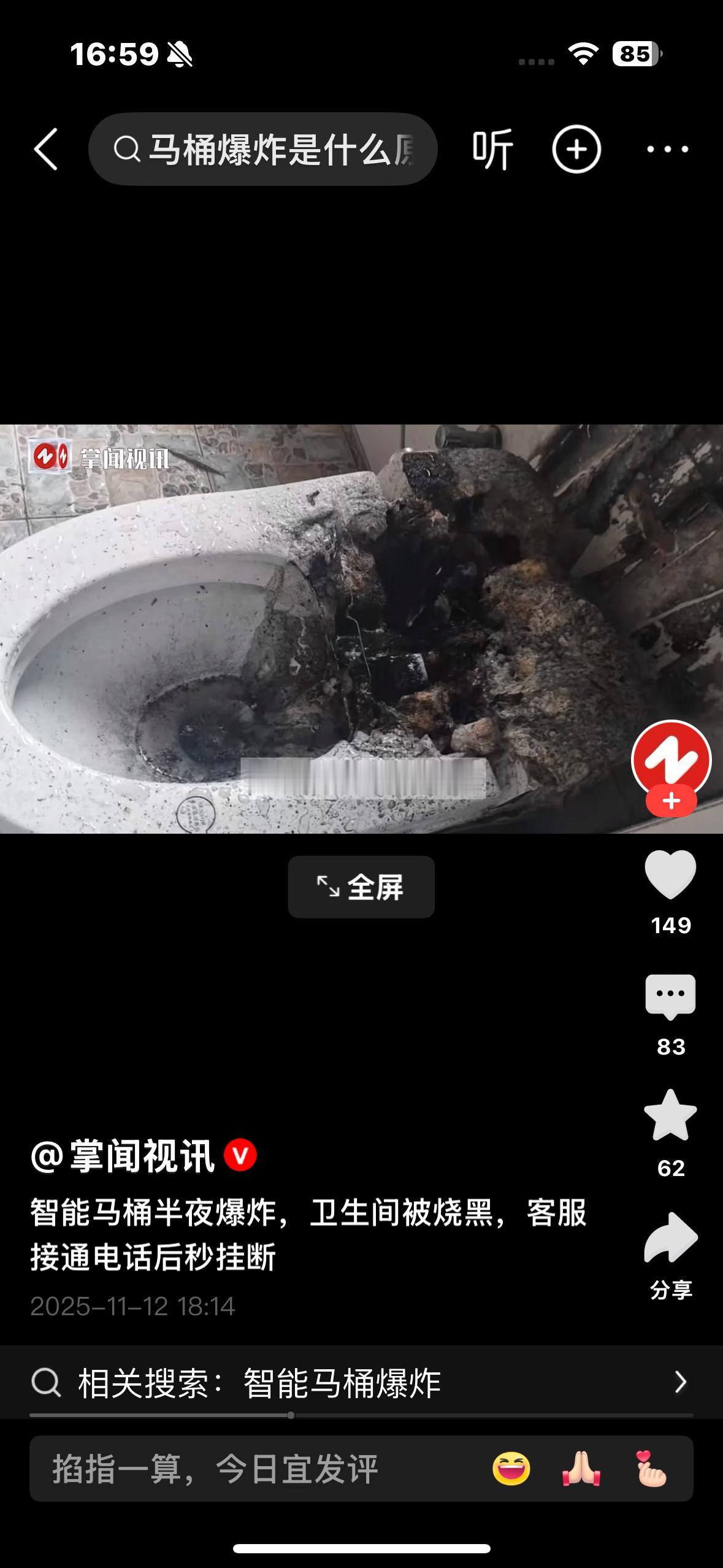 智能马桶爆炸我是第一次听说! 大家唠唠咋回事。 来自掌闻视讯